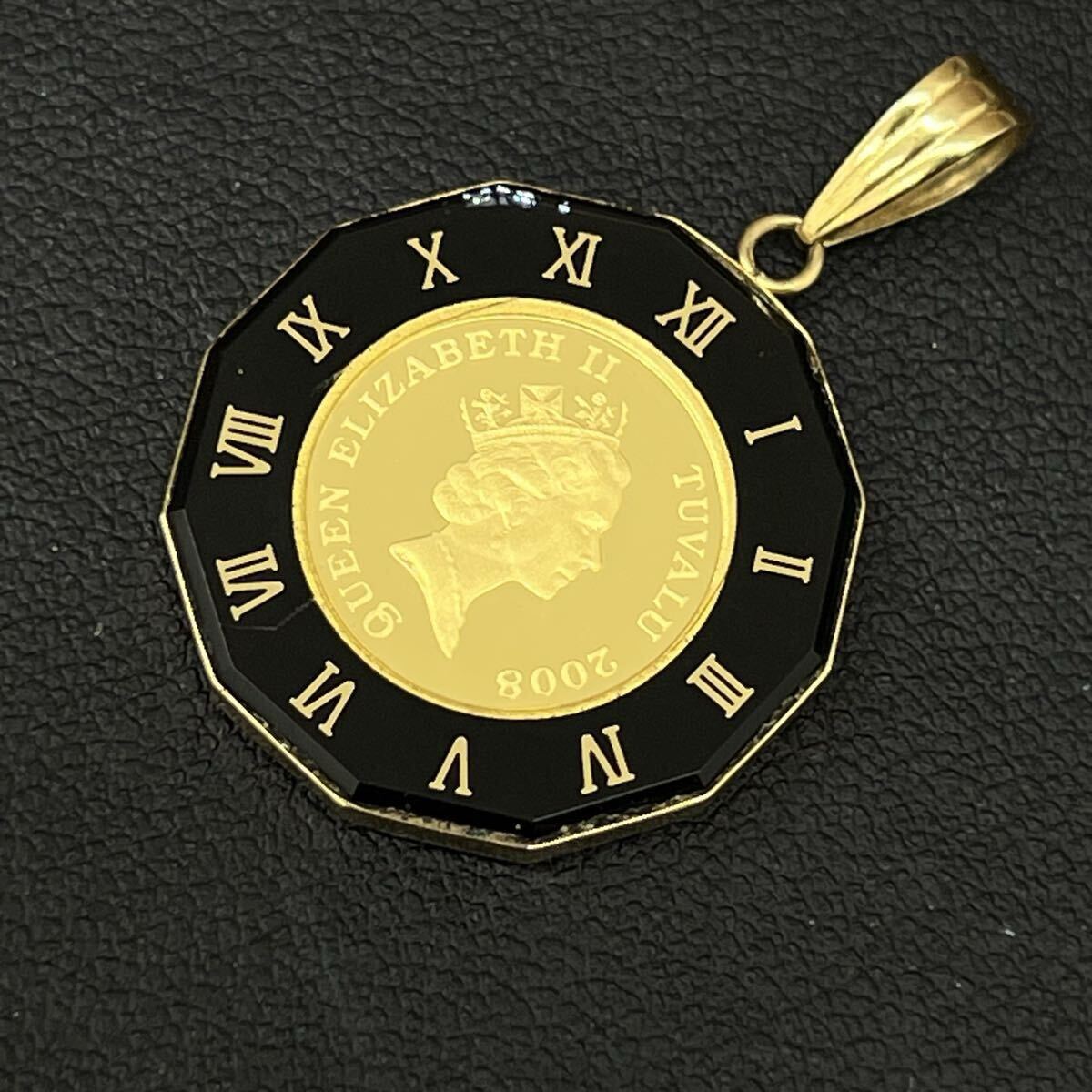 (B092613) K18/IG K24 純金 YG 9999 GOLD ネックレス ペンダントトップ チャーム コイン エリザベス 1/25oz QUEEN Elizabeth Ⅱ TUVALU 2008 3 Dollars アクセサリー
