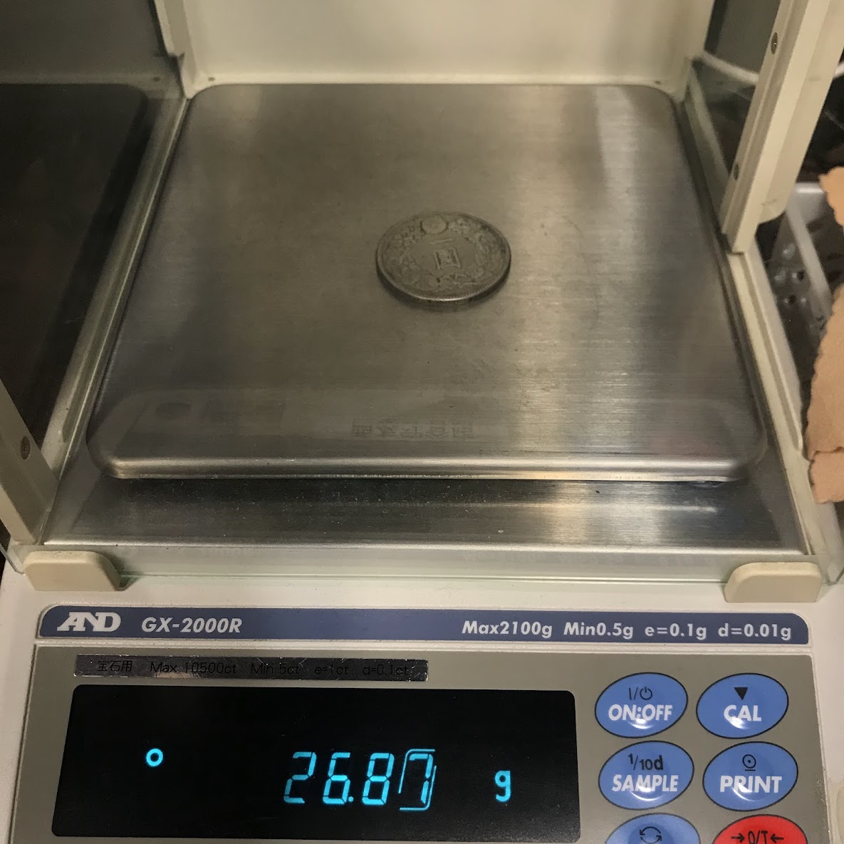 ①明治45年 一圓銀貨 直径:約38mm 重量:約26.87g Ag:91.21%
