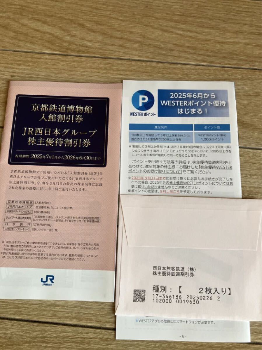 JR西日本株主優待割引券(4割引)2枚 有効期限