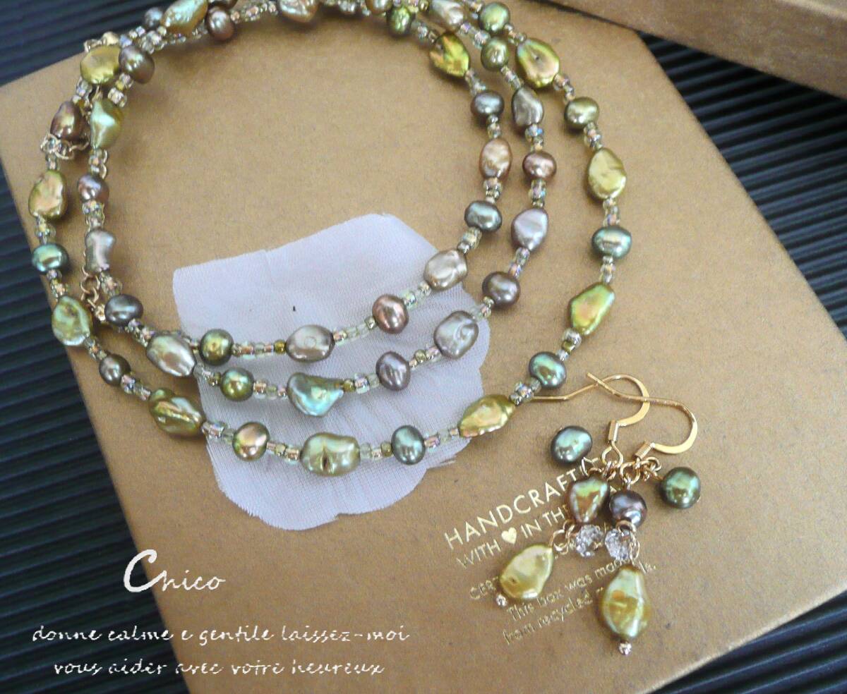 ◆ビーズ…ライムオリーブゴールド淡水パール ケシ…約6.0-6.5×8.0-9.0mm