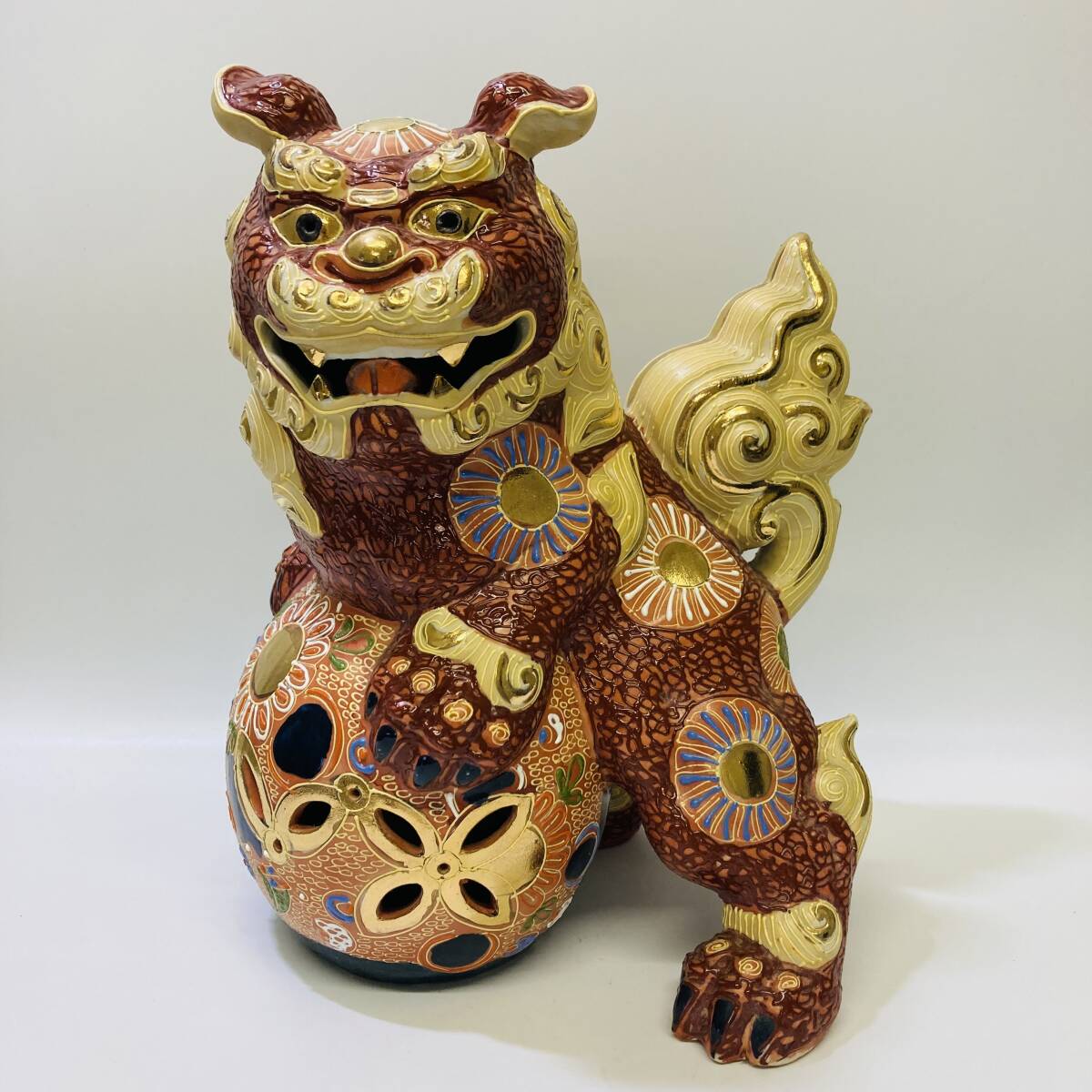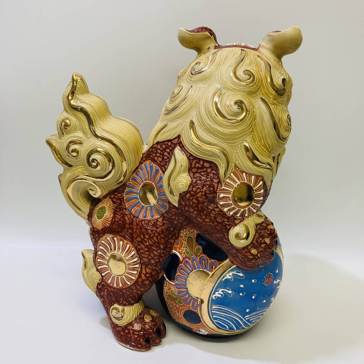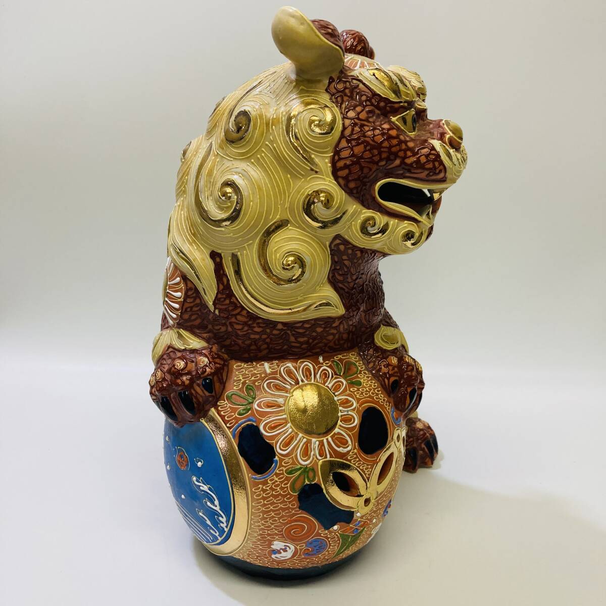 九谷焼 玉乗り獅子 縁起物 置物 シーサー 魔除け 陶器 金彩 狛犬 骨董 古美術 工芸品 高さ27cm NC2287E |