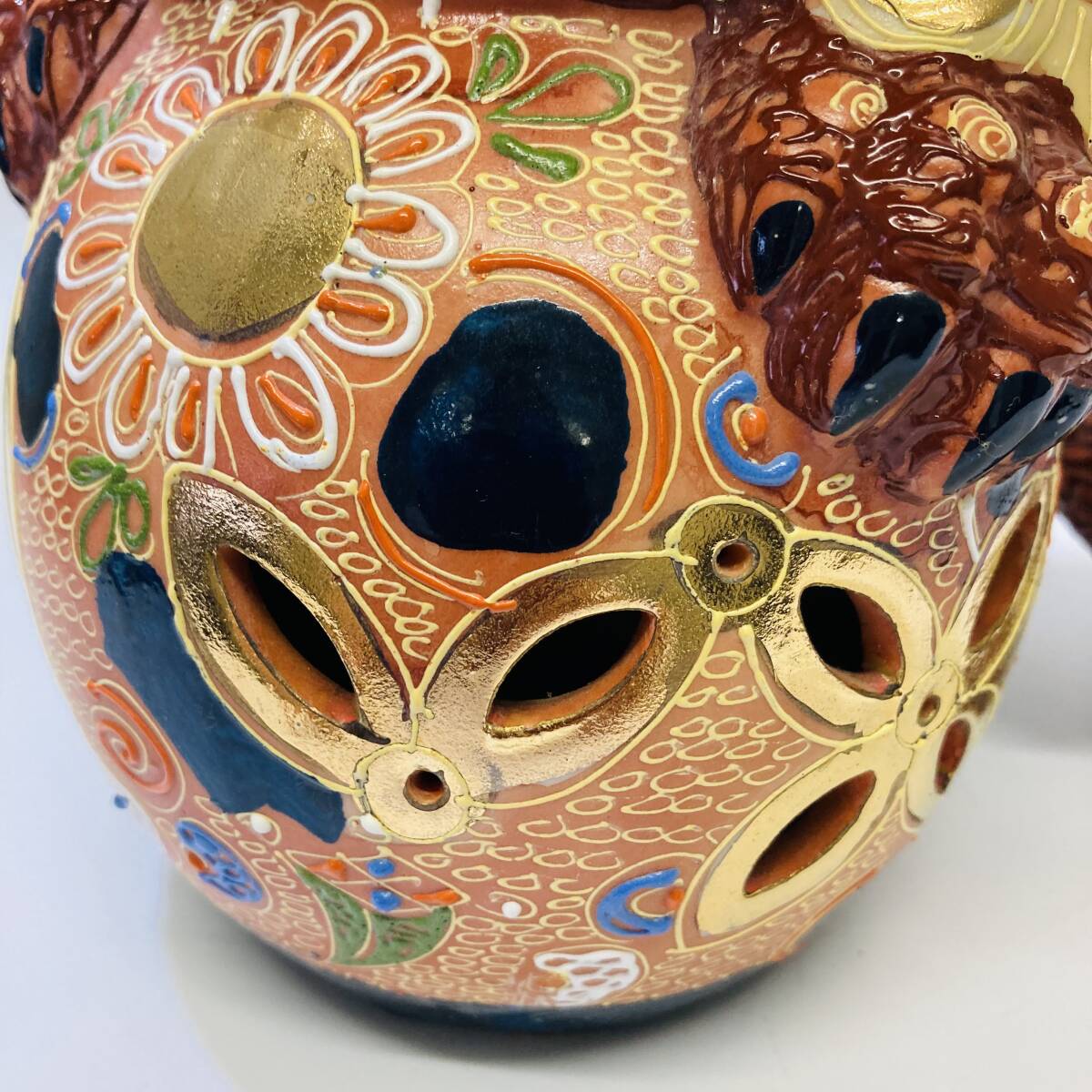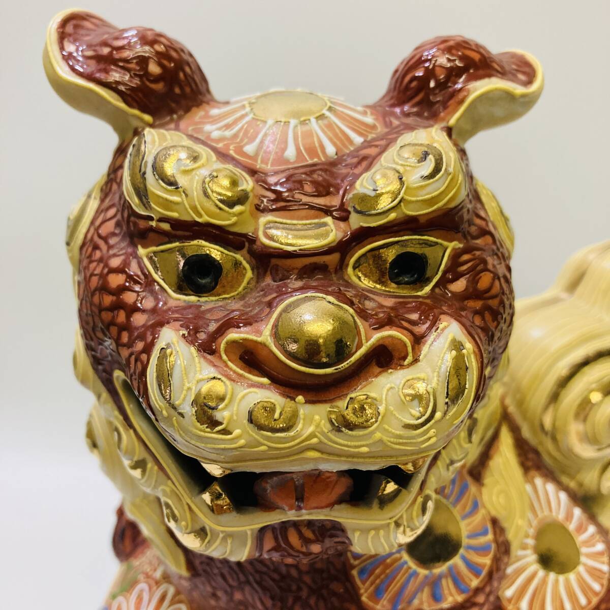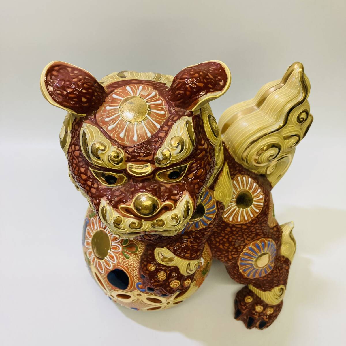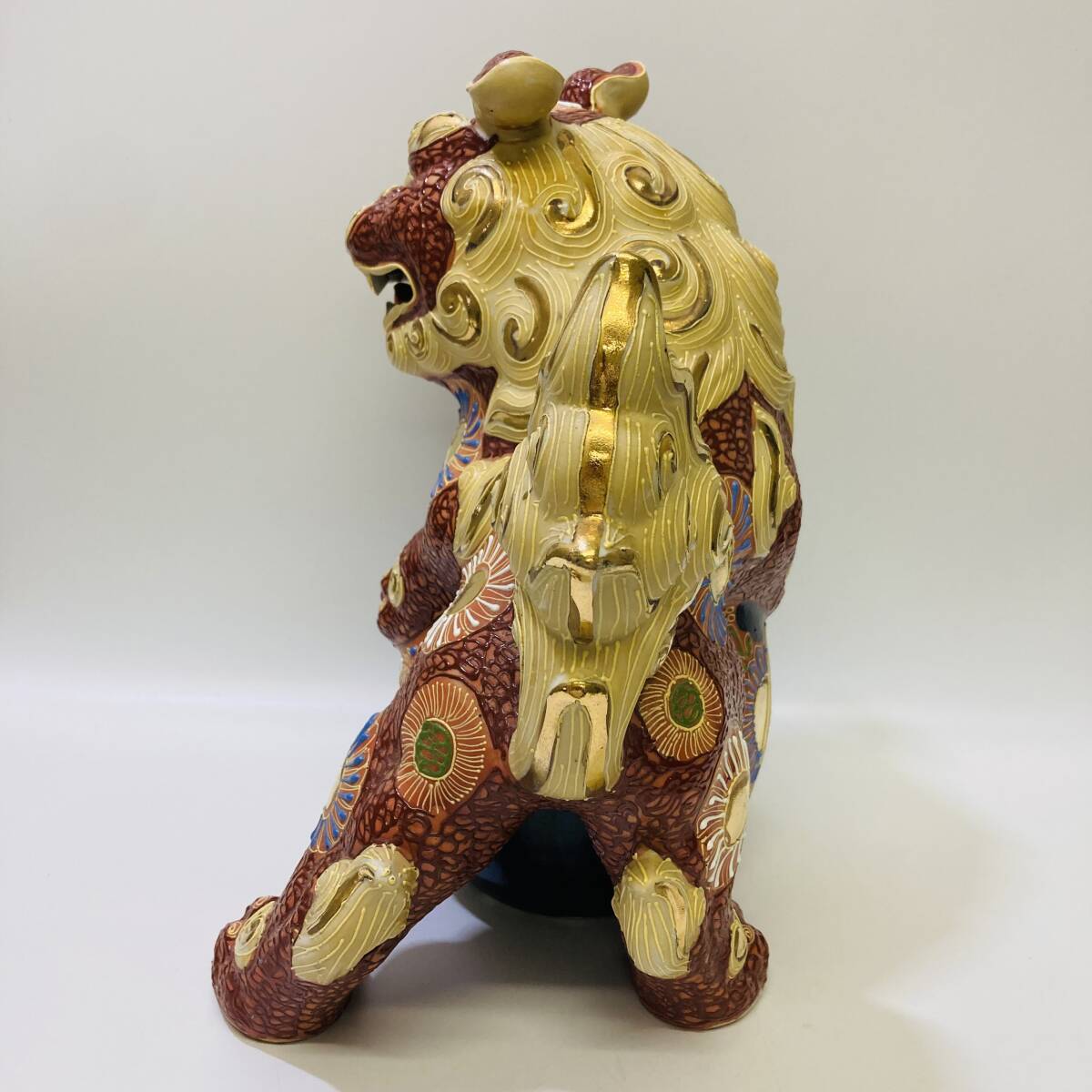 九谷焼 玉乗り獅子 縁起物 置物 シーサー 魔除け 陶器 金彩 狛犬 骨董 古美術 工芸品 高さ27cm NC2287E |