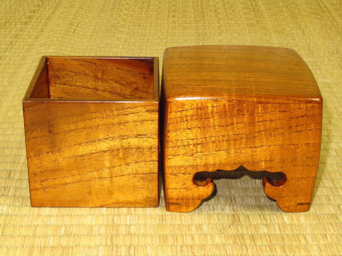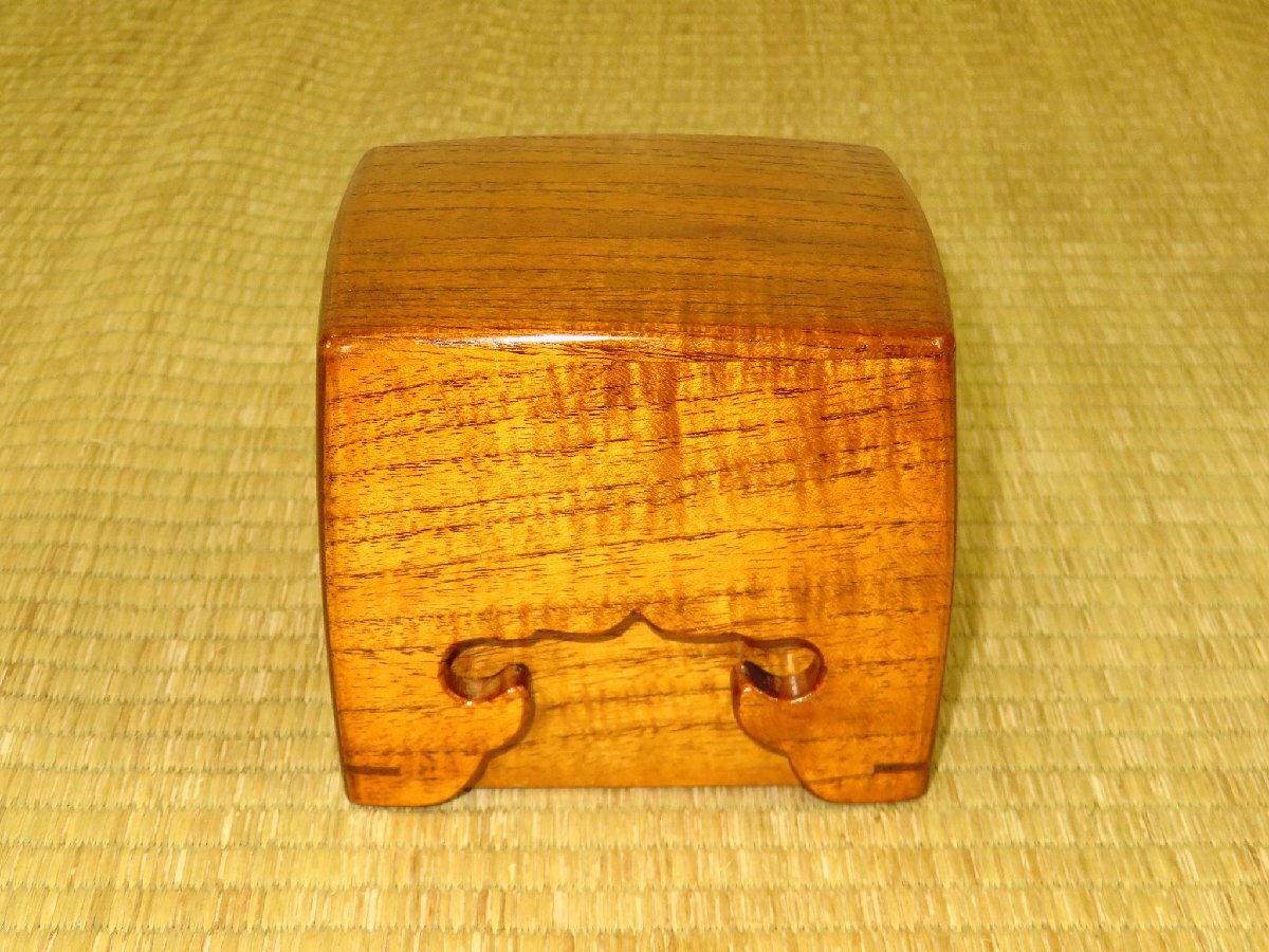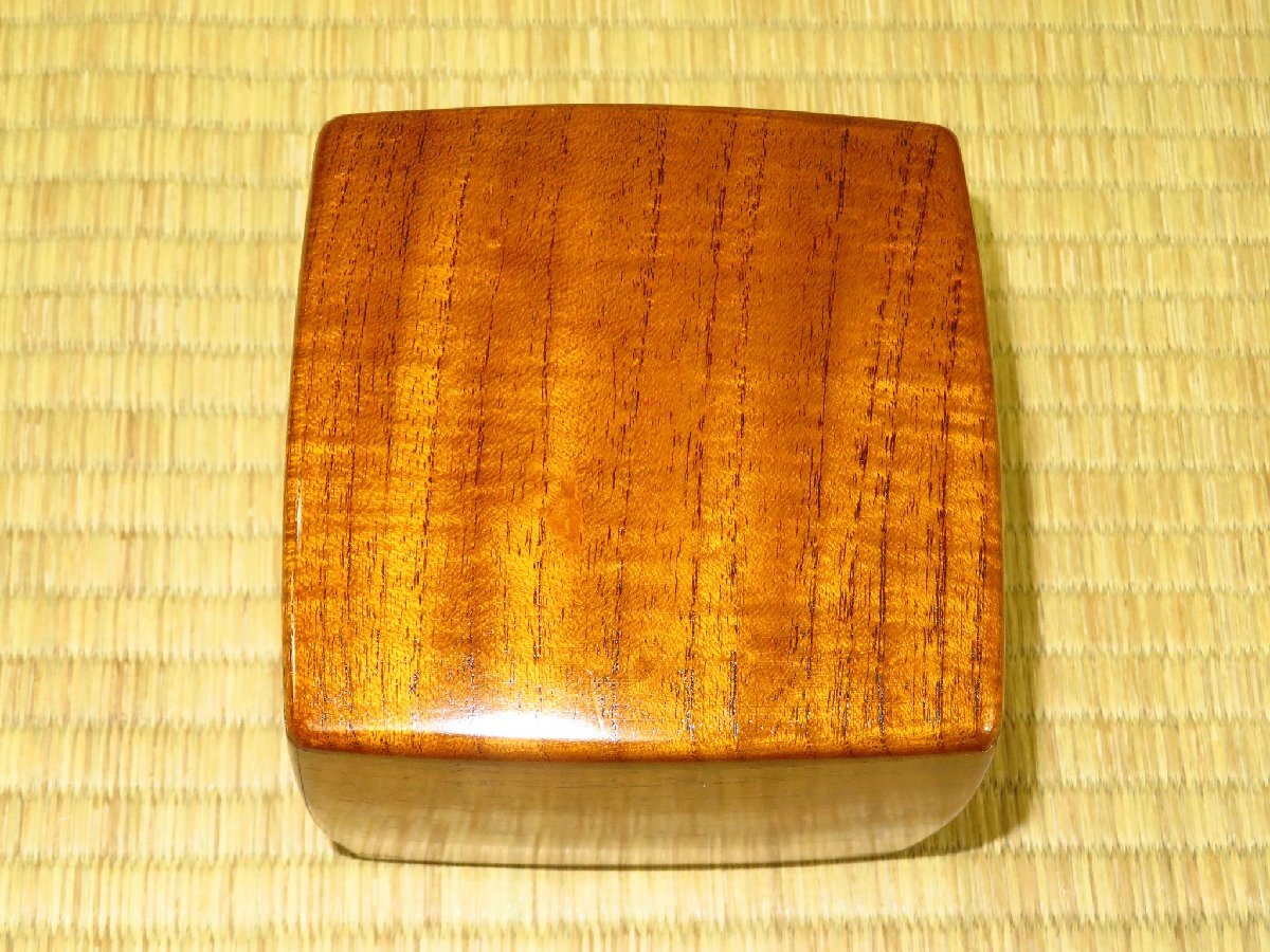 木地は駒箱材の最高峰、島桑。拭漆仕上げ。素材の良さを生かして野趣に重きを置く、味わい(詫び)重視の作風です。