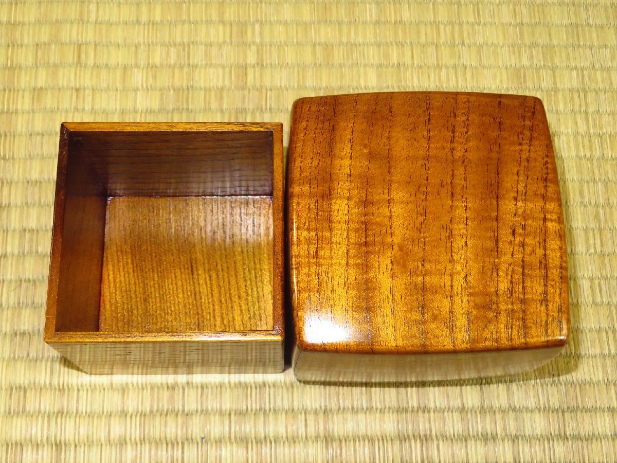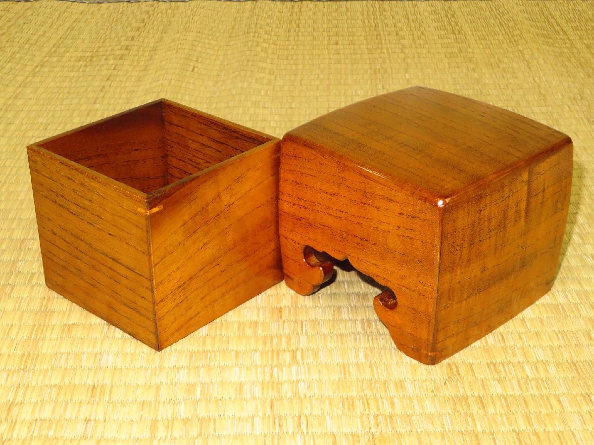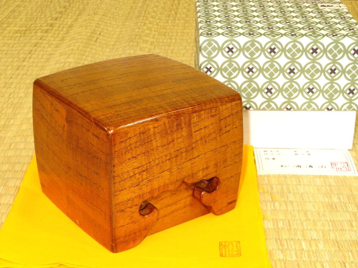 木地は駒箱材の最高峰、島桑。拭漆仕上げ。素材の良さを生かして野趣に重きを置く、味わい(詫び)重視の作風です。
