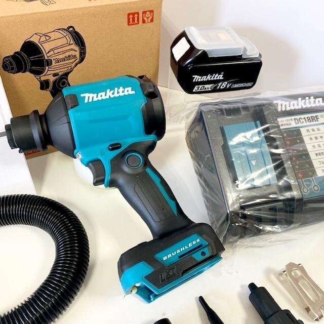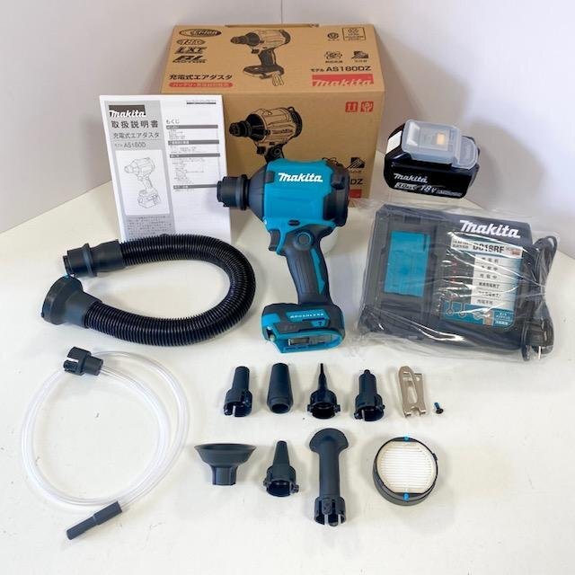 ■マキタ 18V充電式エアダスター AS180DZ 本体+バッテリーBL1830B+急速充電器DC18RF+ノズル・アタッチメント各種付 ★新品 未使用