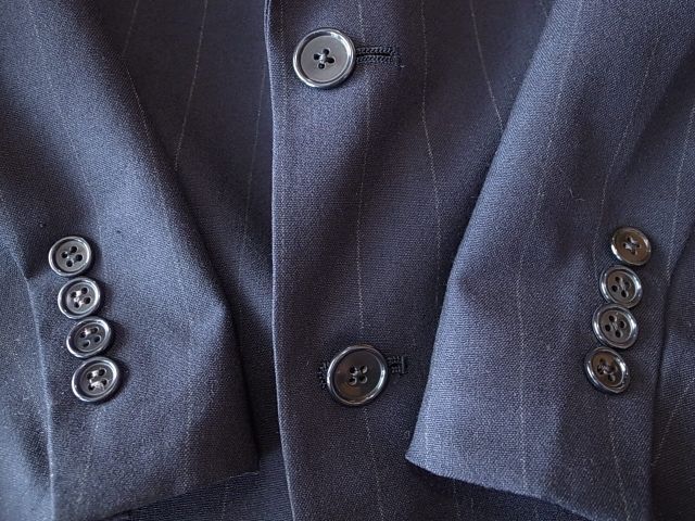 ◆ブランド 「Christian Dior」 アメリカ古着 ●サイズ表記 42R 実寸サイズ XL 相当 肩幅…48cm(肩先から肩先の間の長さ) 身幅…58cm(両脇を横直線に結んだ長さ) 着丈…77cm(後衿ぐり中央から後身頃裾) 袖丈…63cm(袖付けの肩先から袖先) ※平置き状態での素人採寸ですので、多少の誤差はご了承ください。 ●素材…ウール オールシーズン対応 ●色…紺 ストライプ柄 ●ポケット… フラップポケット ●裏地…総裏仕立て ●ベント…ノーベント ●製造国表記…USA ●状態…使用感は少ない美品です。 ★送料 全国一律 700円 佐川急便 (北海道900円 沖縄その他離島1700円) ※複数ご購入の場合、同梱発送可能です。 |