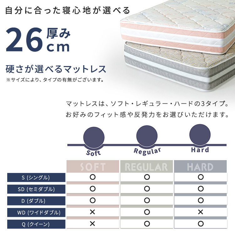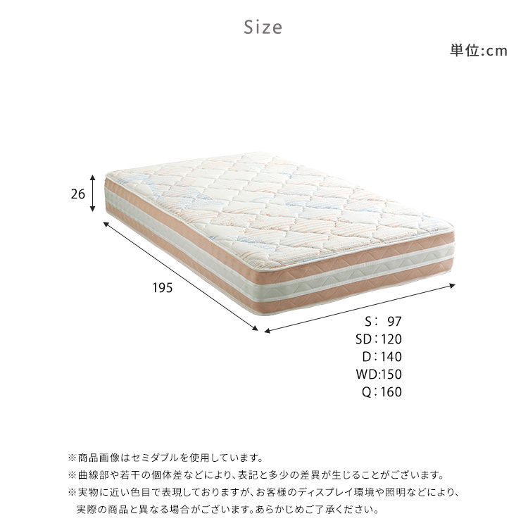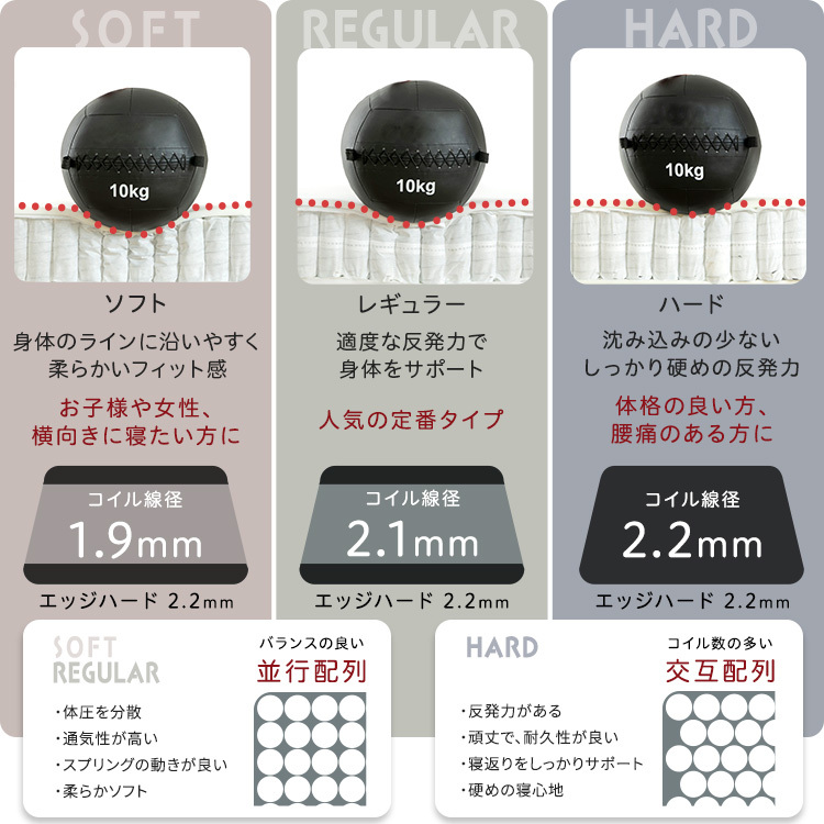 商品サイズ (約)幅97×奥行195×高さ26cm コイル数:ソフト・レギュラー:465個、ハード:504個