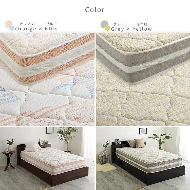 日本製ポケットコイルデザインマットレス mornisha-モニーシャ- (シングル) ソフト/オレンジ×ブルー