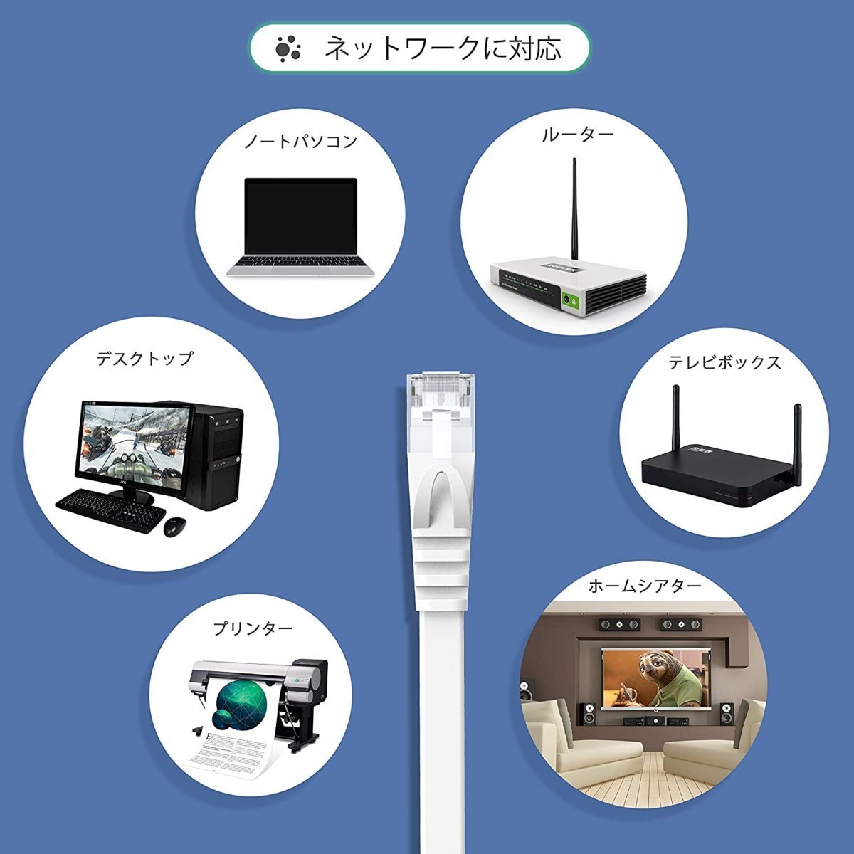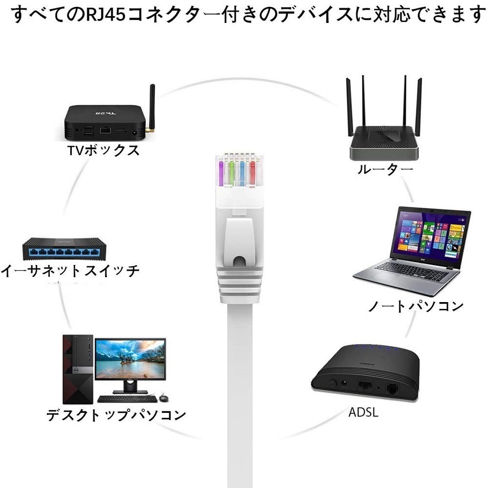 配線しやすい、やわらかいよりフラットタイプのLANケーブルです。