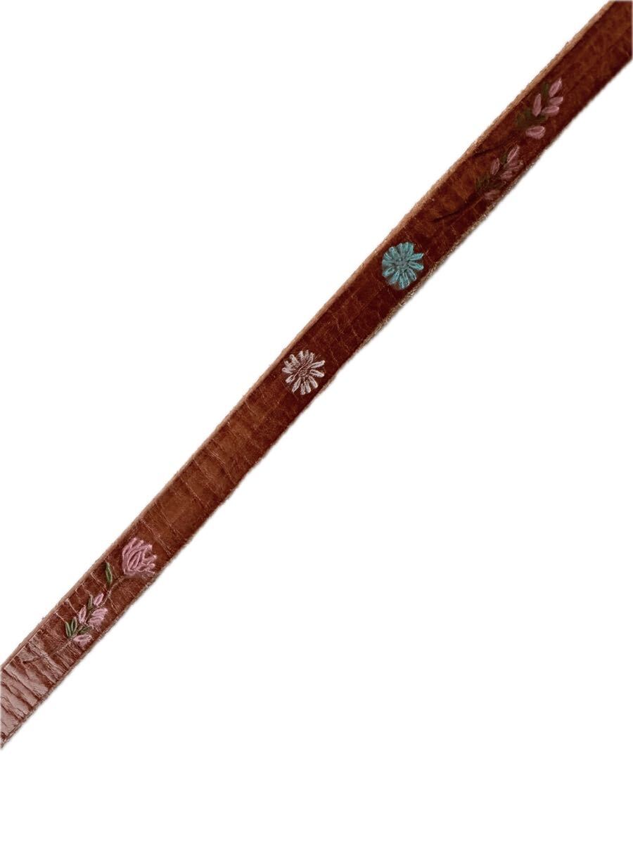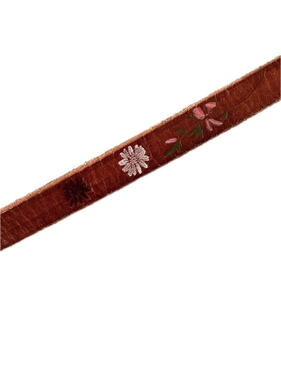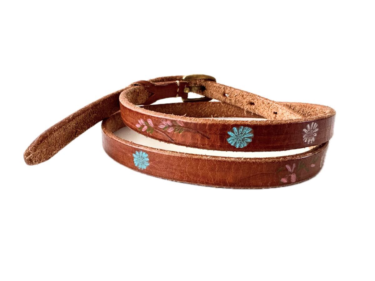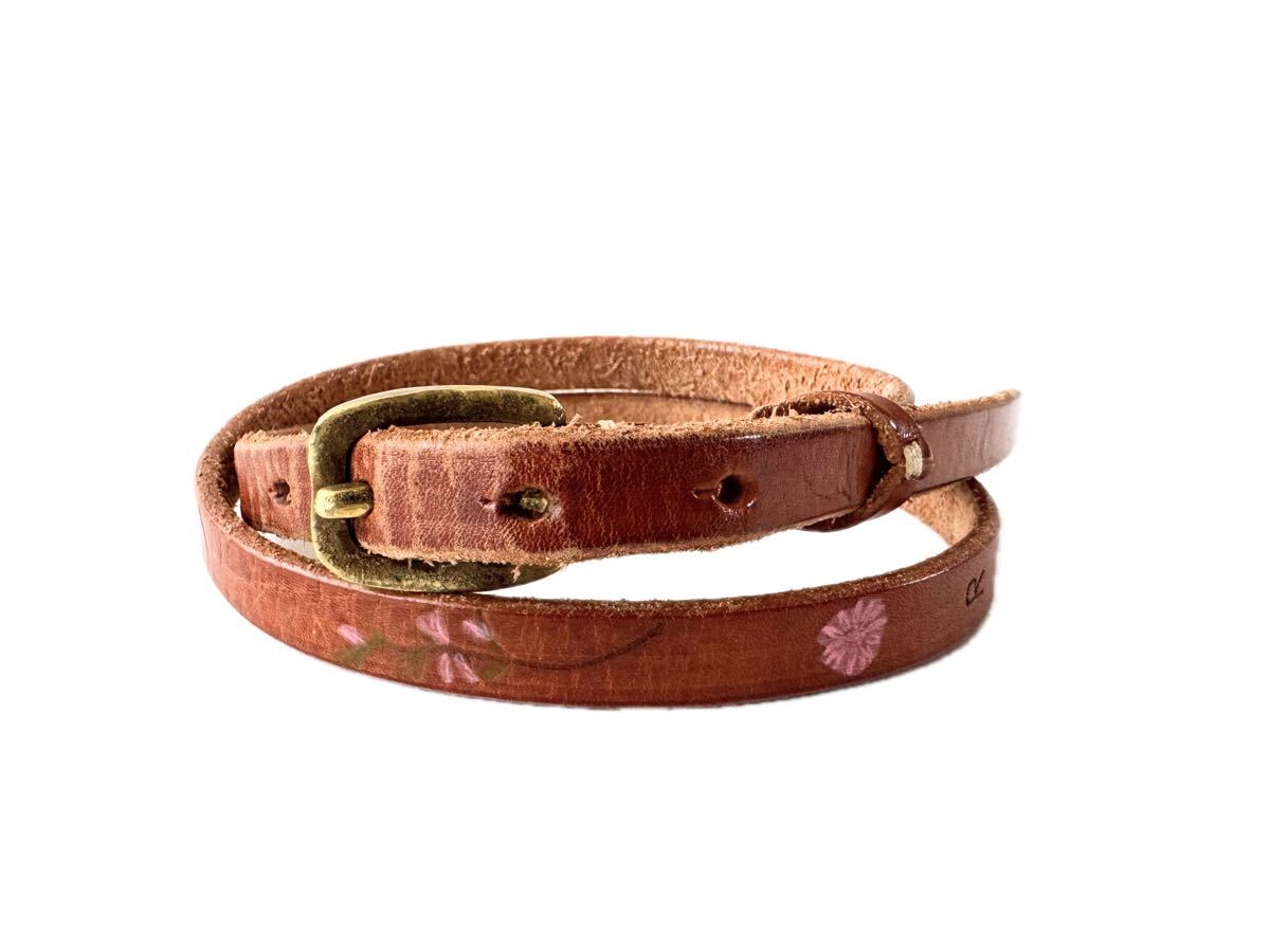 ・肉厚で上質なレザーに少し無骨なゴールド系バックルや花柄プリントがとてもお洒落なベルトになります♪