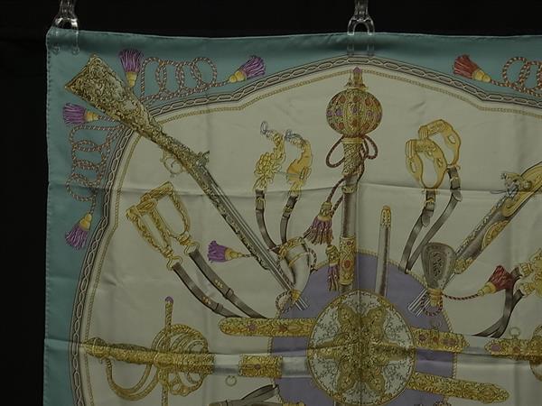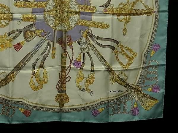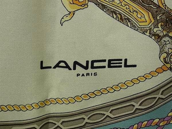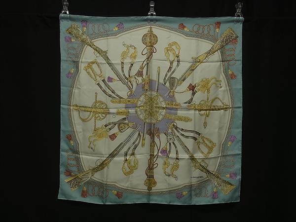 LANCEL ランセル シルク100% タッセル 大判 スカーフ ストール ショール レディース アイボリー系×ライトブルー系 DG4910