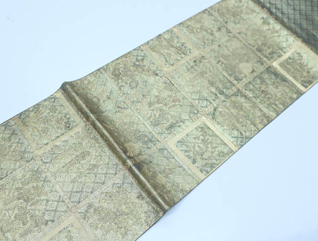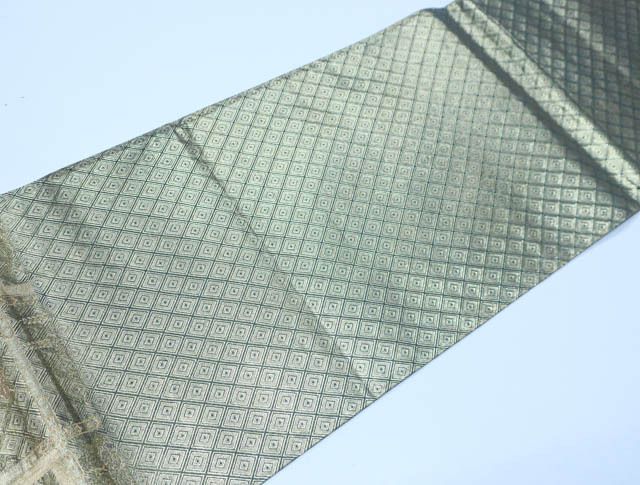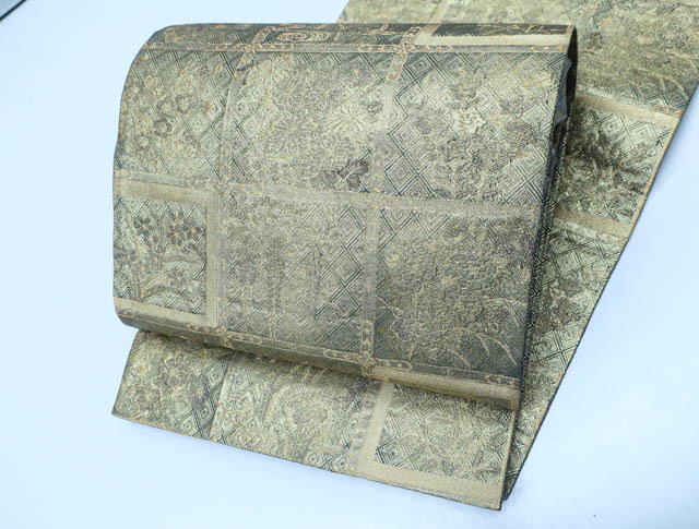 リサイクル商品の為、若干の使用感がございますがご着用いただけると存じます。 地色は、金色です。 1枚目の画像が近いお色かと思われます。 素材は正絹です。 |