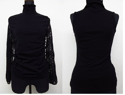 m5354 美品 イタリア製/日本製 トップス 2点まとめて ハイネック シャーリング レース 長袖 ノースリーブ M~L ジープラン他