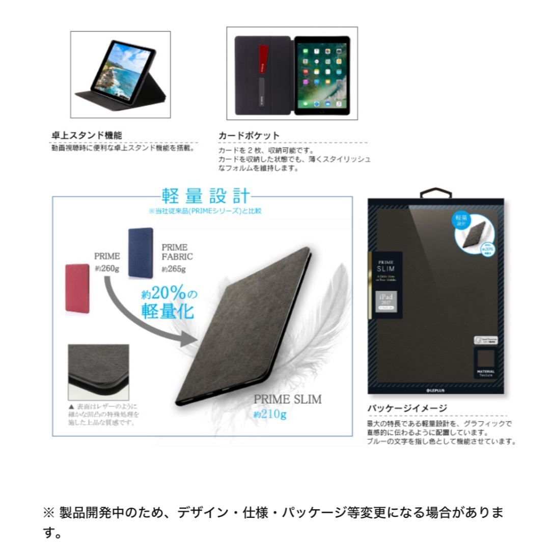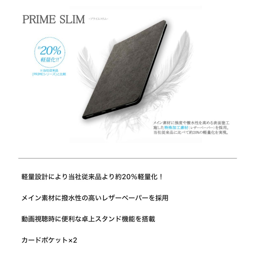 シリーズ最軽量、従来より約20%軽量化!/特殊加工素材を採用し、軽量化を実現/2枚のカード収納ポケット/動画鑑賞に最適なスタンド機能
