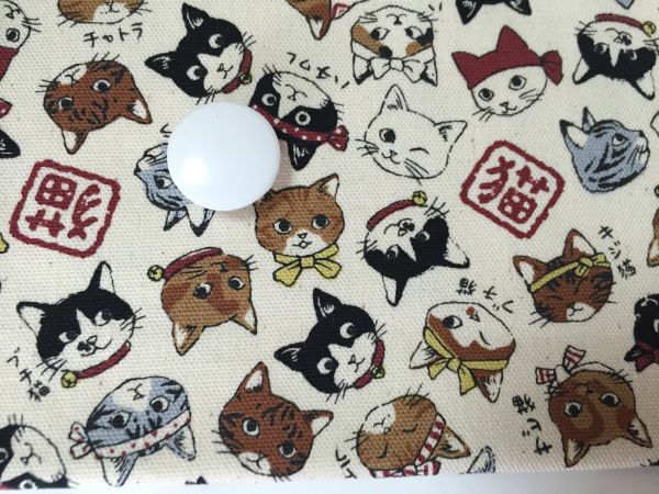US-46 布時間◆ オックス【KOKKA コッカ】110㎝ × 70㎝【ねこ図鑑】猫 ネコ ねこ 生成り系 C