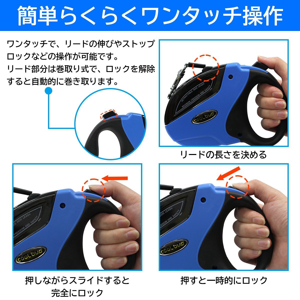 【送料無料】便利なロック機能付き!犬用 伸縮 リード 5m/5メートル 自動巻き取り ブルー 青 ペット 散歩 小型犬 中型犬 犬 ヒモ
