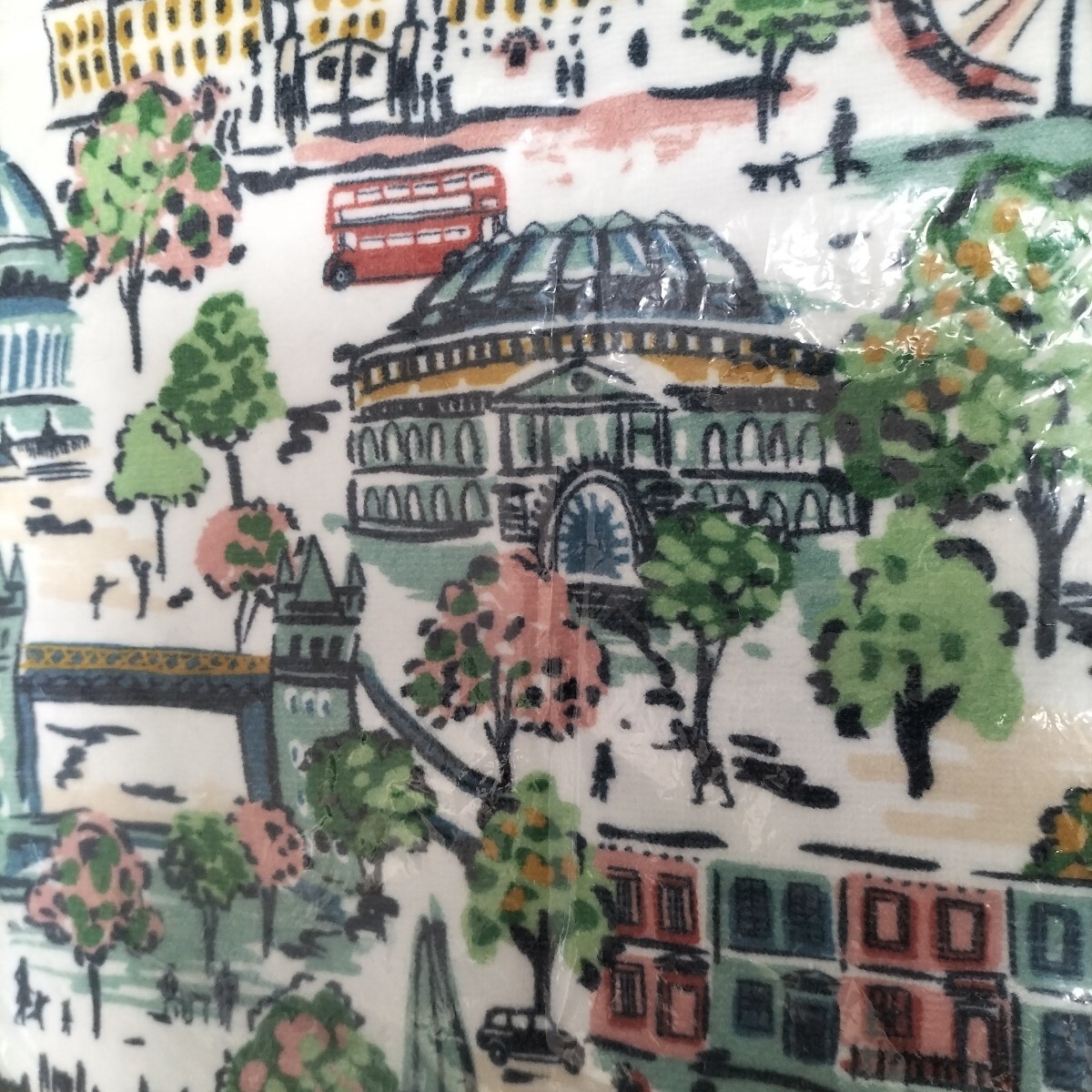 Cath Kidstonのロンドン柄が可愛らしいタオルハンカチです。ロンドンの街並みが細かく描かれており、見ているだけでも楽しいデザインです。未開封のまま保管しておりました。
