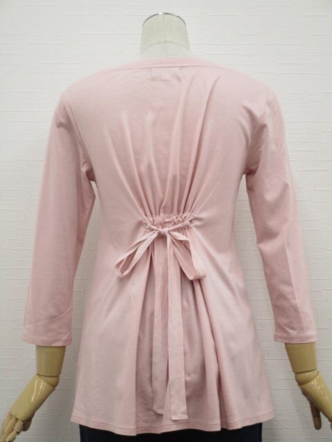 七分袖 ラウンドネック カットソー 38 ピンク地 ゴールド 英字 【メール便可】