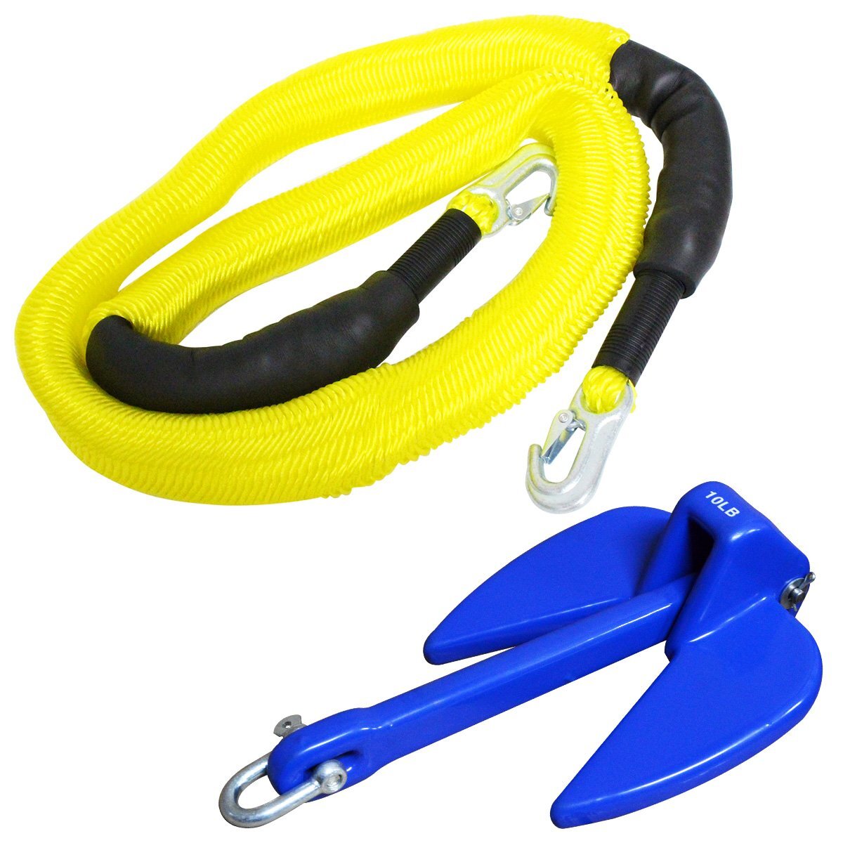 『伸縮ロープ/アンカーセット』爪型 アンカー 10LBS 4.5kg 青 ブルー 6M フロート のびのび アンカー ロープ 黄色
