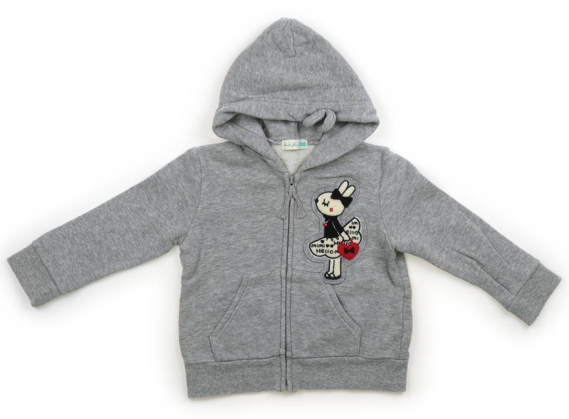 フードはカットソー生地の裏地がついています。全体に毛羽立ちがあります。品質タグが一部切ってあります。目立った汚れはありません。