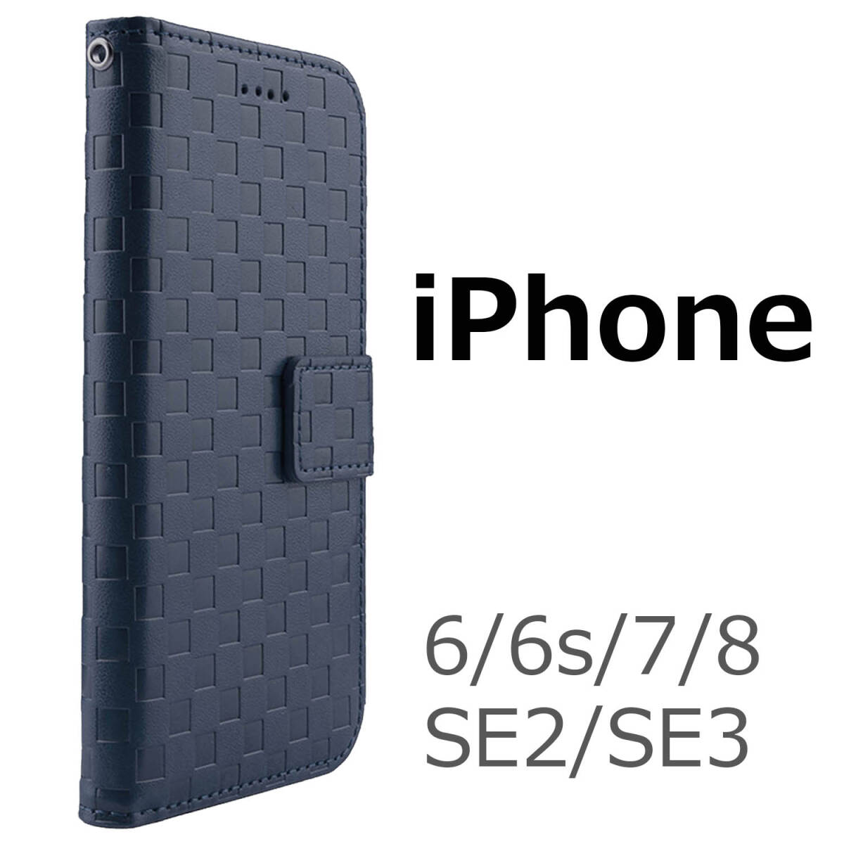iPhone SE3 ケース 手帳型 SE第3世代 カバー SE2 ネイビー 青 紺 iPhone8 シンプル iPhone7 6s 6 格子柄 革 チェック ベルト 送料無料 安い