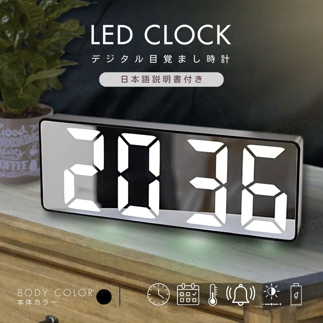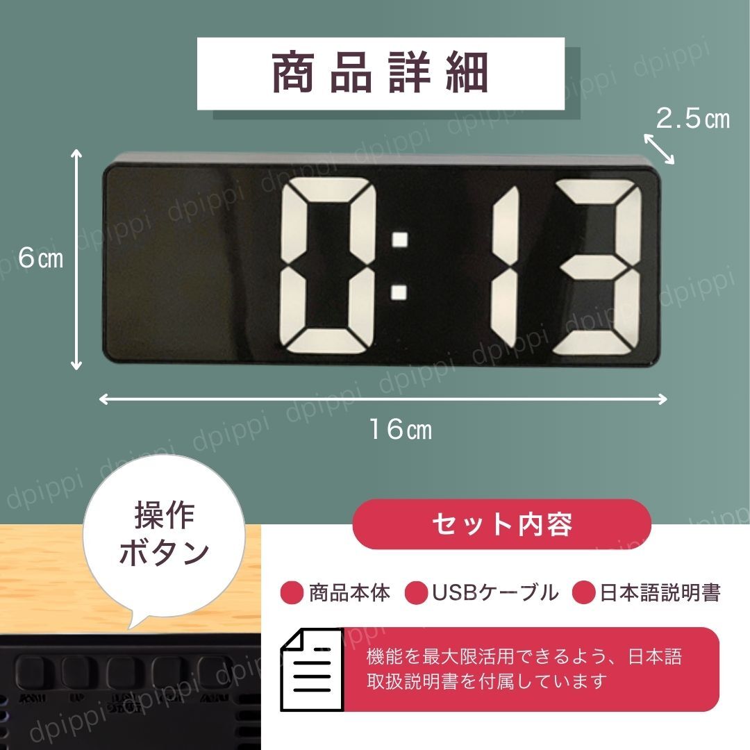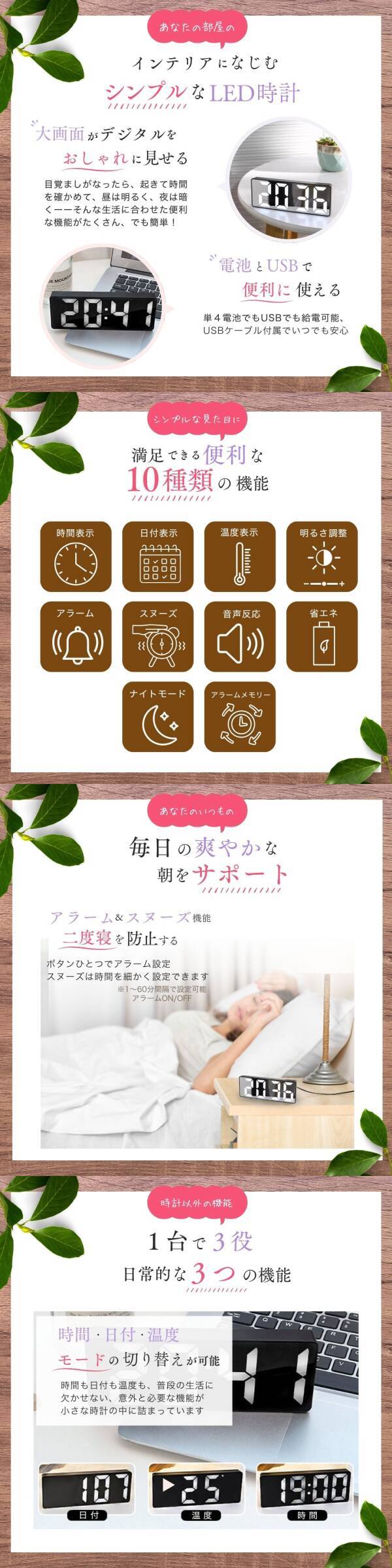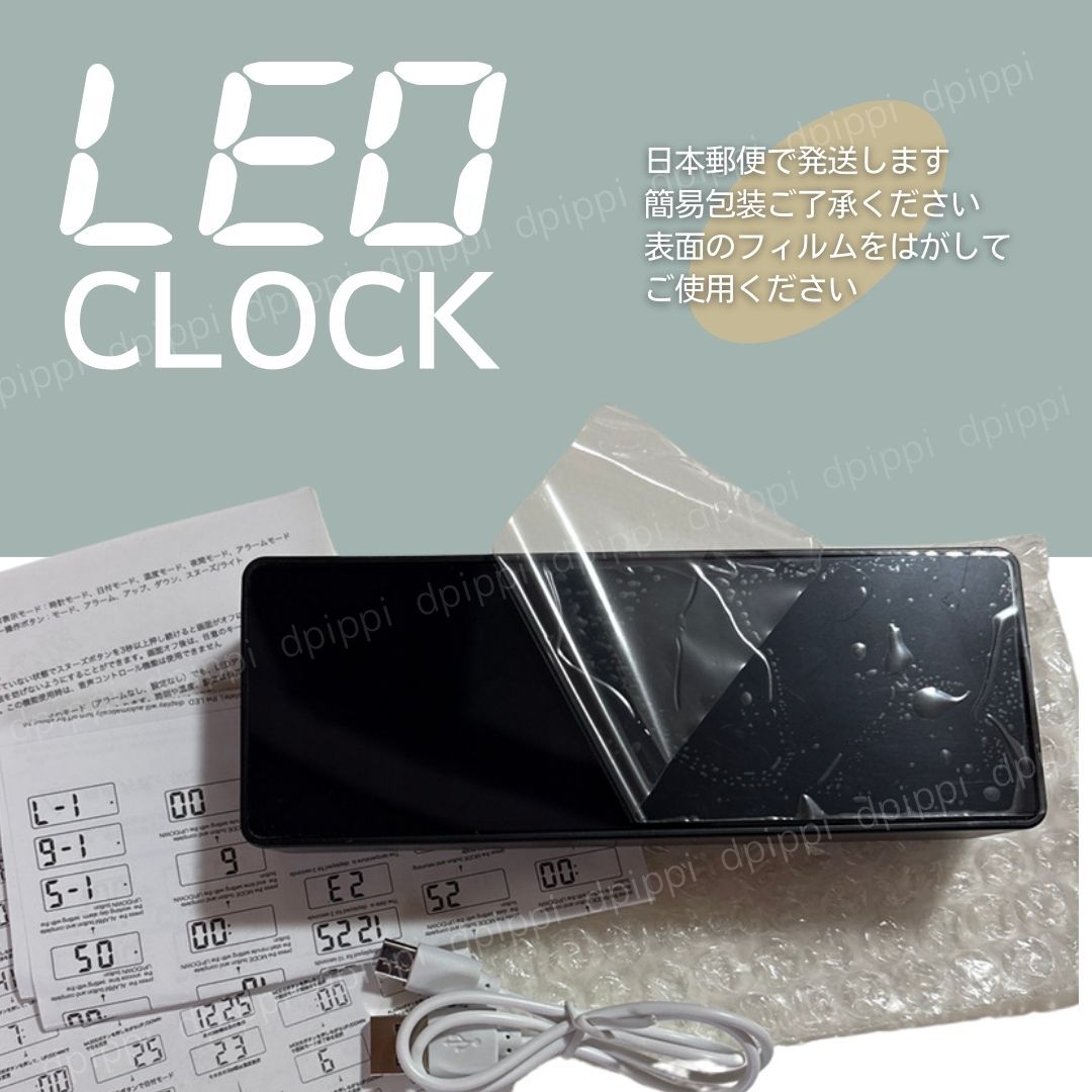 LED デジタル 置き時計 目覚まし時計 多機能 卓上時計 置時計 温度計 カレンダー 日付 アラーム スヌーズ USB 電池 省エネ 日本語説明書 黒