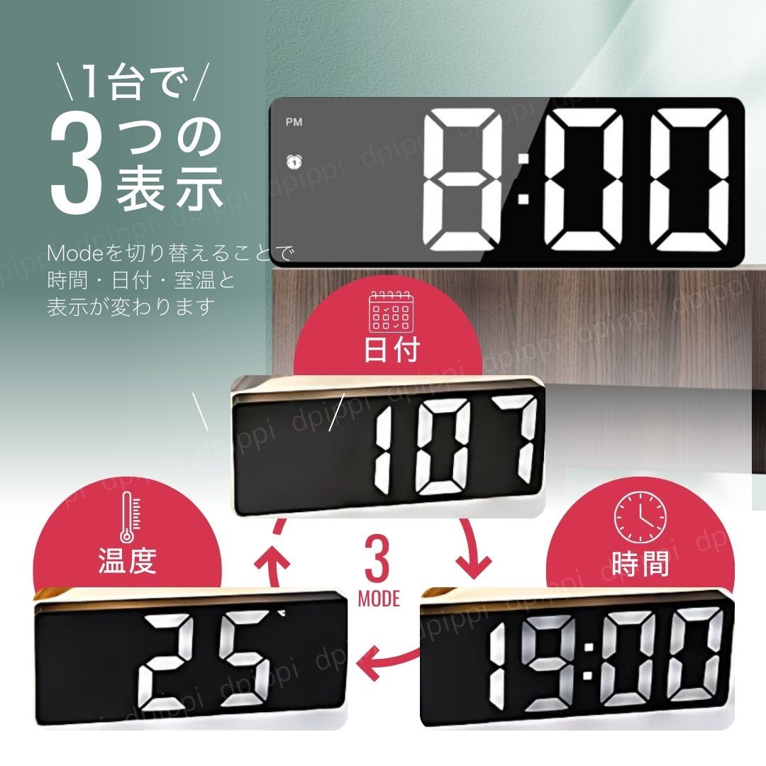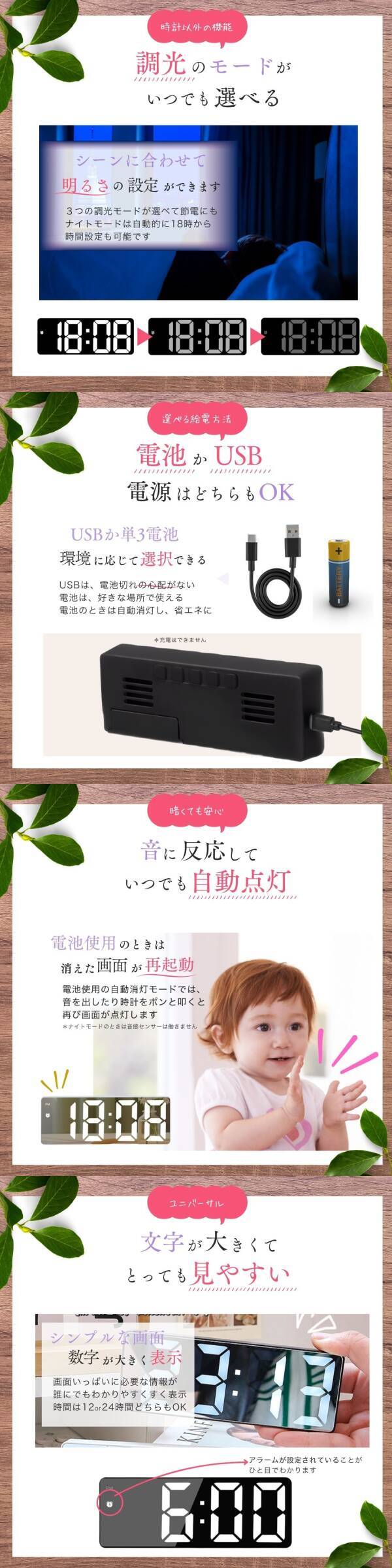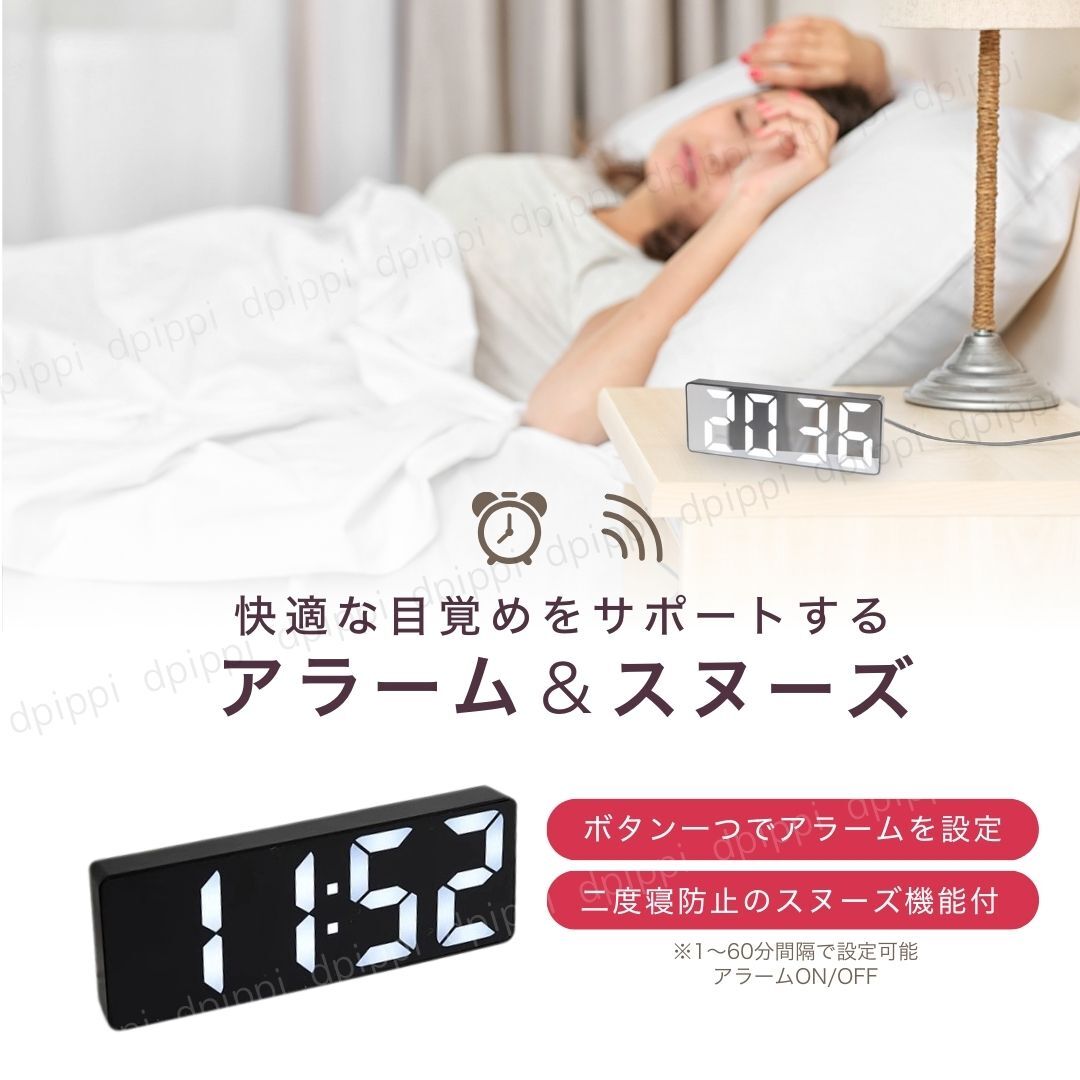 LED デジタル 置き時計 目覚まし時計 多機能 卓上時計 置時計 温度計 カレンダー 日付 アラーム スヌーズ USB 電池 省エネ 日本語説明書 黒