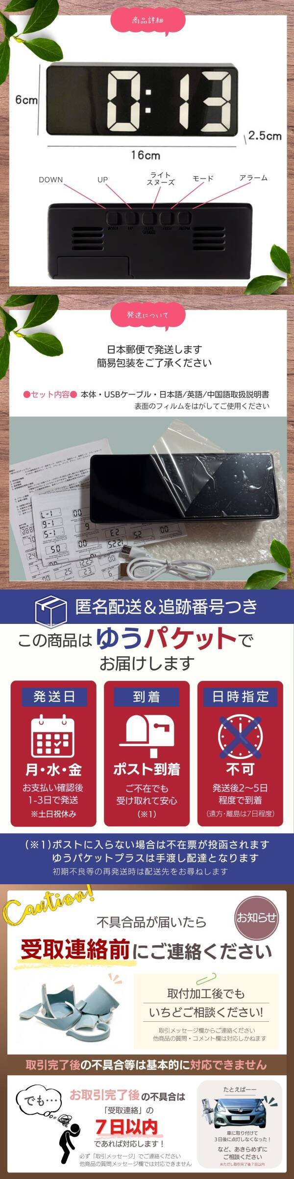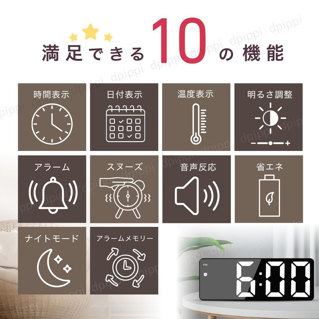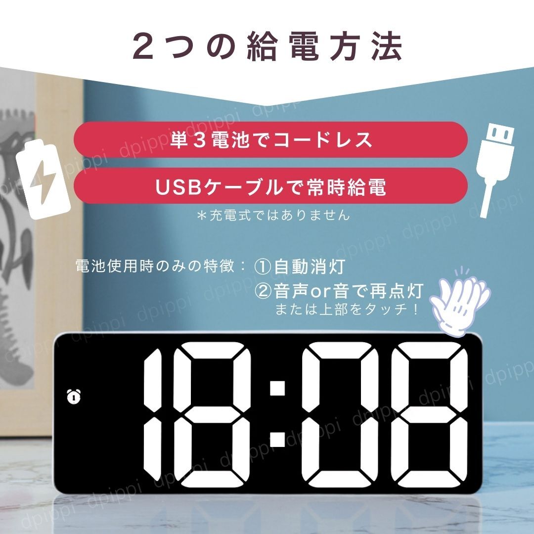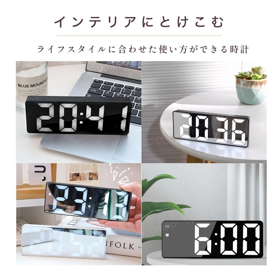 LED デジタル 置き時計 目覚まし時計 多機能 卓上時計 置時計 温度計 カレンダー 日付 アラーム スヌーズ USB 電池 省エネ 日本語説明書 黒