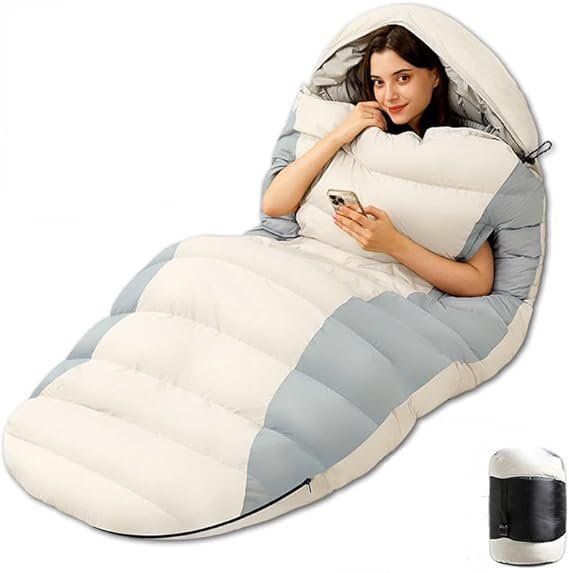 ■ キャンプアウトドアウォームダウン寝袋、ユニークなデザイン、腕と足を伸ばすことができます。