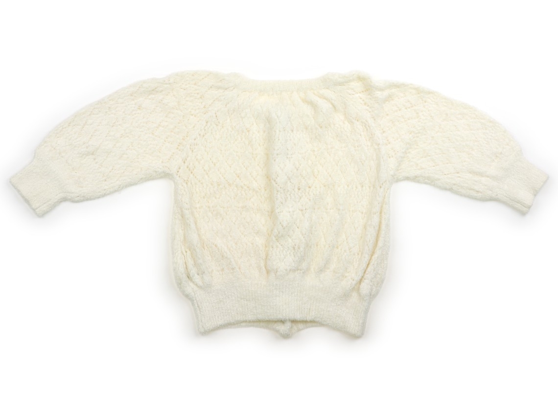 サイズ表記はFREE。平置き実寸でそれぞれ約、裄丈52cm/身幅80cm/サイドネックポイント~着丈44cm。針抜きニット。全体的に使用感がありますが、特に目立つ汚れはなくまだお使い頂けそうです。