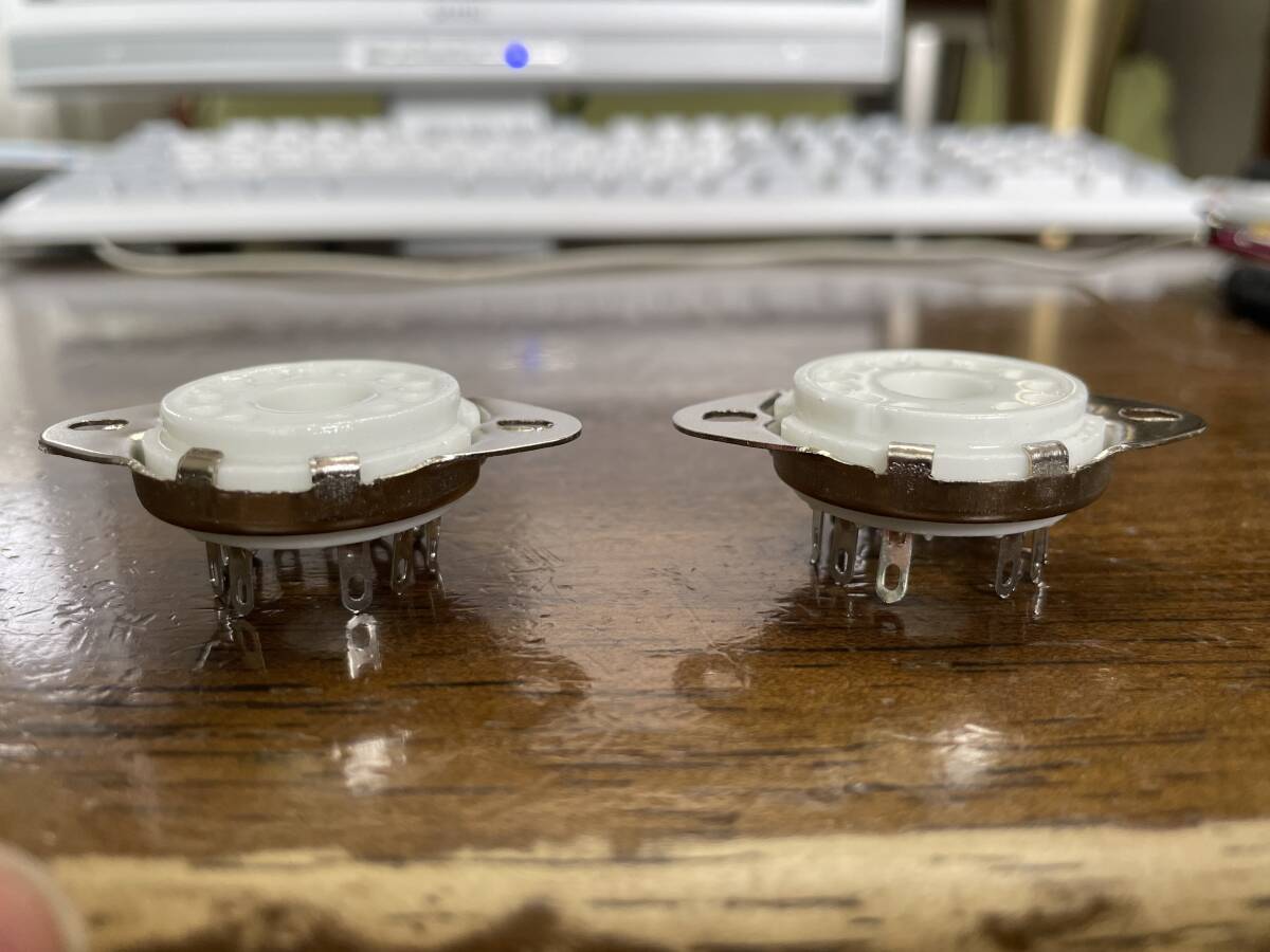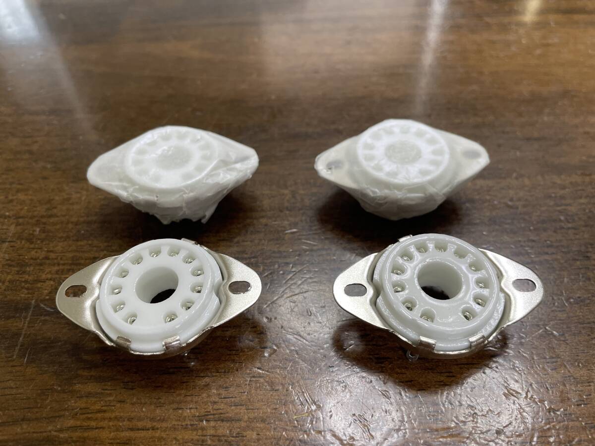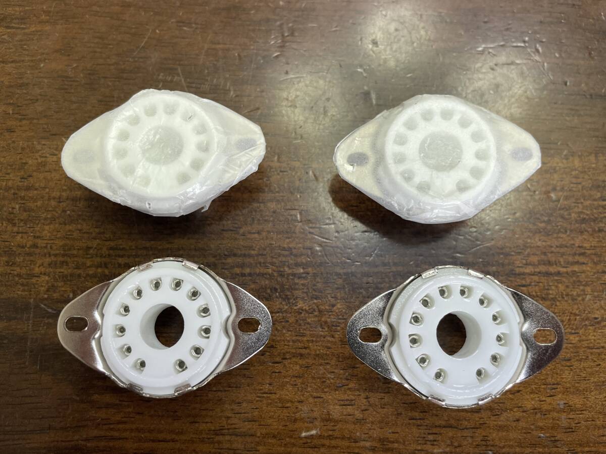 中国製の真空管ソケットです。NOSのUSA製や国産品に比べ精度、仕上げはまだ今一の部分があります。当方で使用上問題ないと判断したものを出荷致しますが、見落としも完全に防ぐことはできません。明らかに使用不能の場合は交換返品など対応させて頂きますが、外観理由や手直しで使頂ける場合は交換返品などは致し兼ねます。ロットが混ざるとメッキの色ムラなども考えられます。できるだけ揃えるようには致しますが、「4個とも同じものを送れ」といったご要望には完璧にお応えすることは出来兼ねます。落札いただいた場合は以上をご了解頂けたものとさせて頂きます。納得頂けない方は当方以外のオークションをお探し下さい。