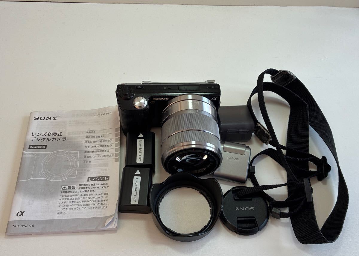 Sony NEX-5 及び標準ズームE3.5-5.6/18-55 OSSです。付属品等は、写真にあるものがすべてです。