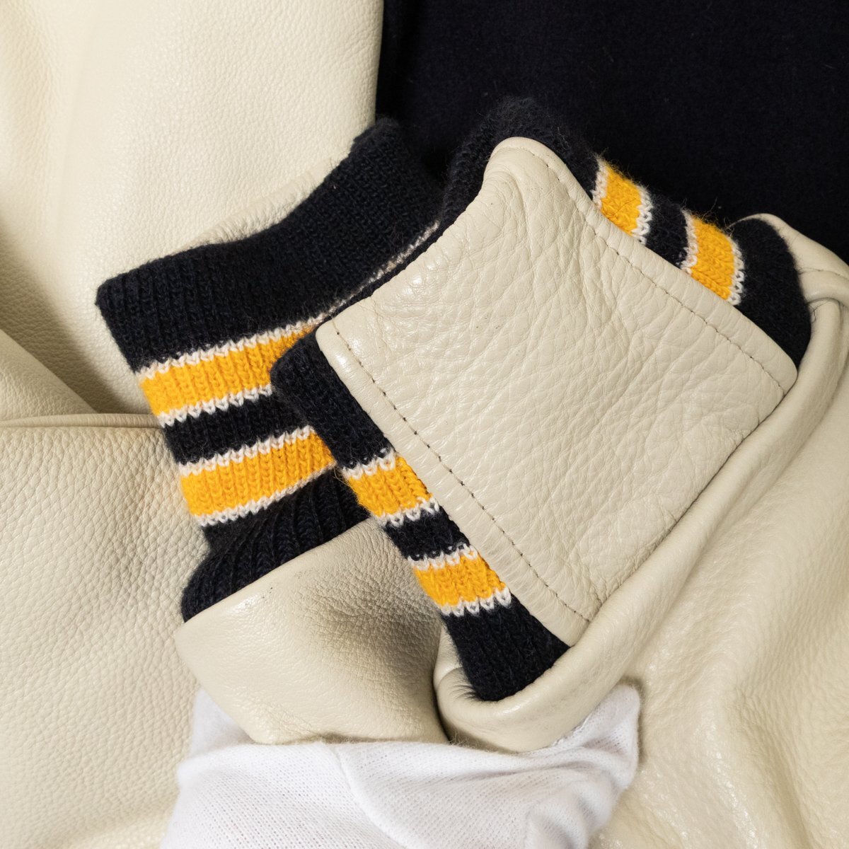 | 状態 | C 全体的に着用感や毛羽立ち・繊維付着、レザー部分・袖口に薄汚れがございます。 |