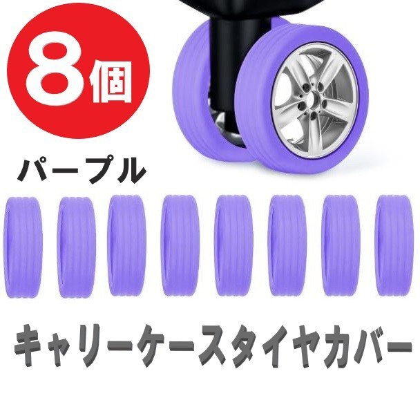 キャリーケースタイヤカバー キャリーケース タイヤゴム 8個セット パープル 汚れ防止 キャスターカバー シリコン バッグ