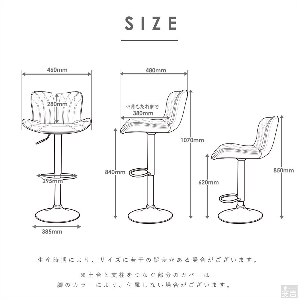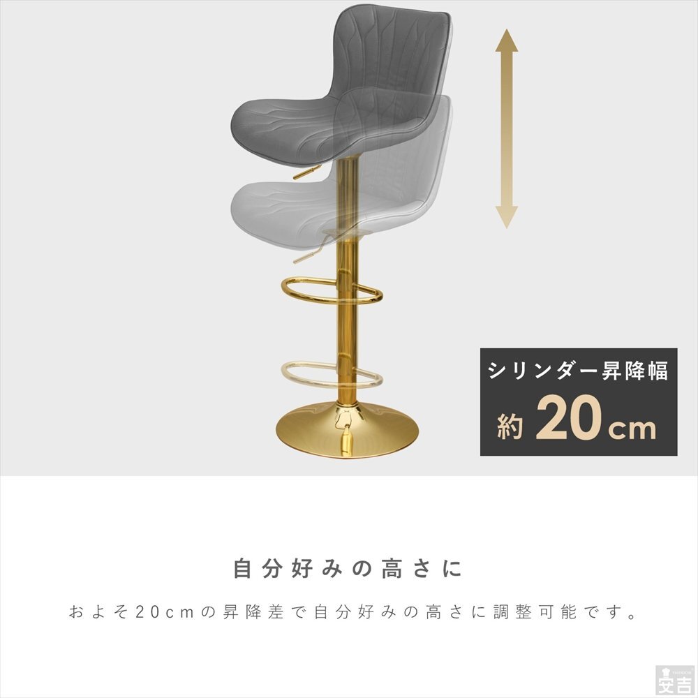 | 特長 | ・座面は360回転機構付き。 ・背もたれ付きでゆったり広めのカウンターチェア。 |