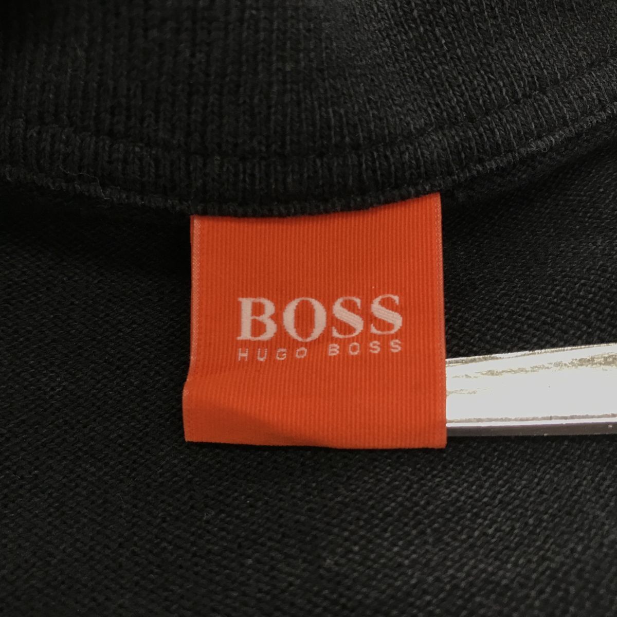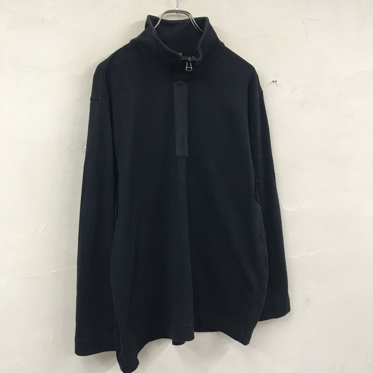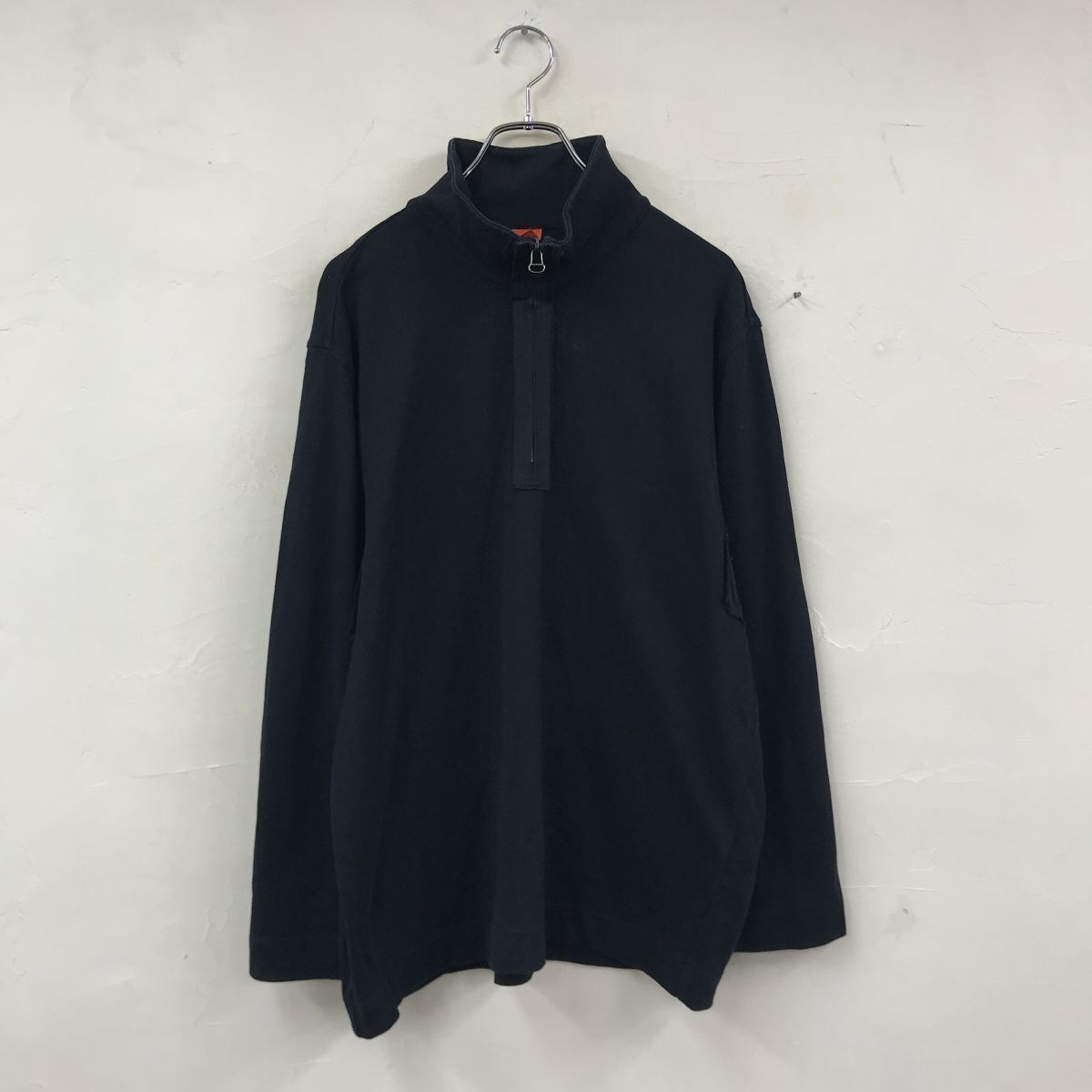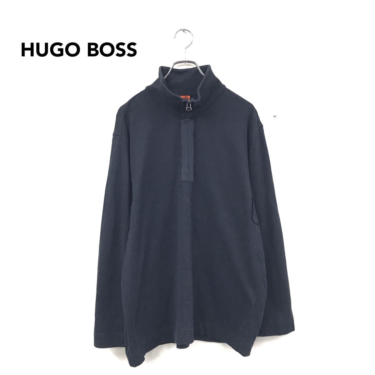 2N2214-T◆HUGO BOSS ヒューゴボス スウェット ハーフジップ プルオーバー 無地◆sizeXL ブラック メンズ トップス コットン100