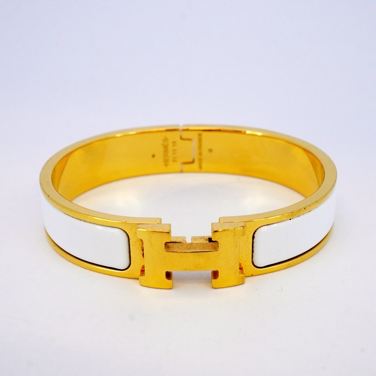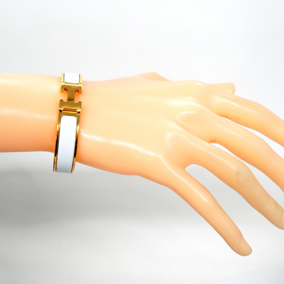 【5job0340】エルメス バングル クリッククラックPM GPメッキ ゴールド ホワイト【中古】レディース