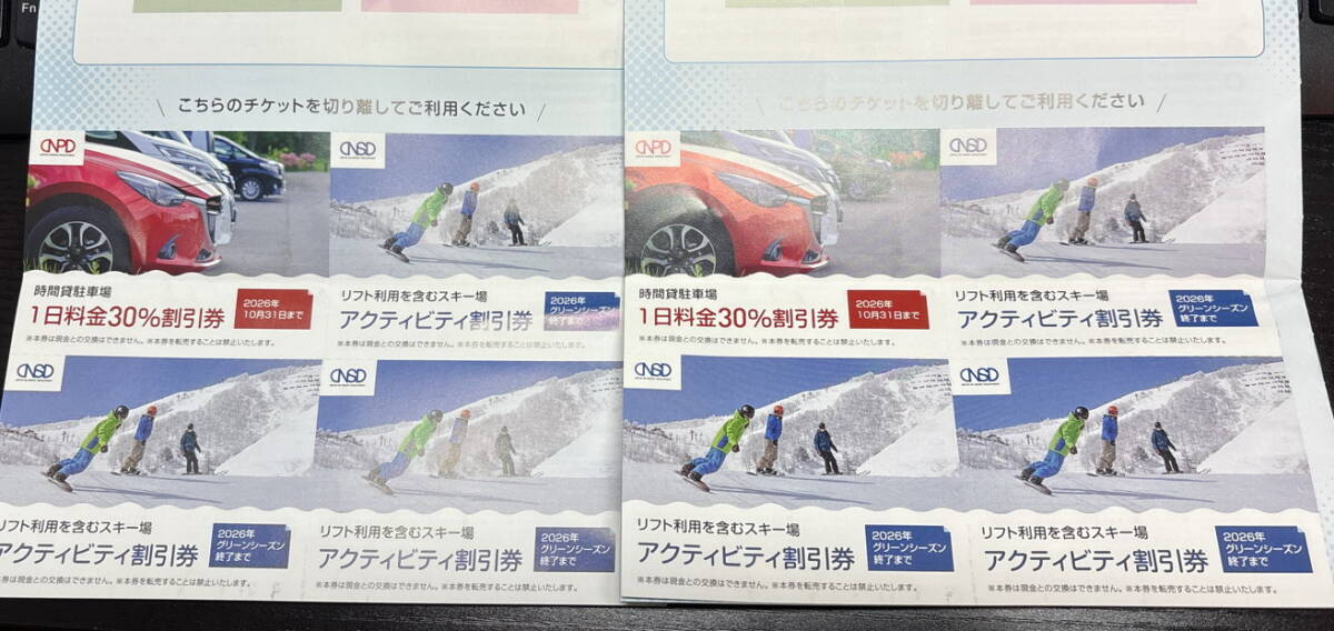 | 日本駐車場開発 株主優待 紙チケット 2セット分 ② ◆日本スキー場開発が運営するリフト及びアクティビティ割引券 6枚 + 駐車場割引券 2枚 有効期限 2026年10月31日 /グリーンシーズン終了まで ●ご利用方法がお分かりの方にお願いします 別途、同じ商品を出品中です。同梱発送の場合はゆうパケットmini(追跡あり)にて発送します。 | ||