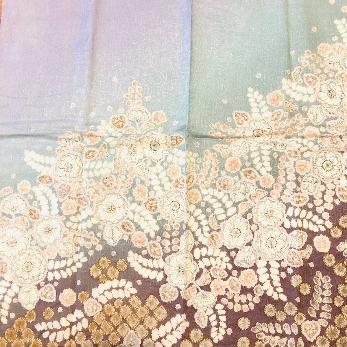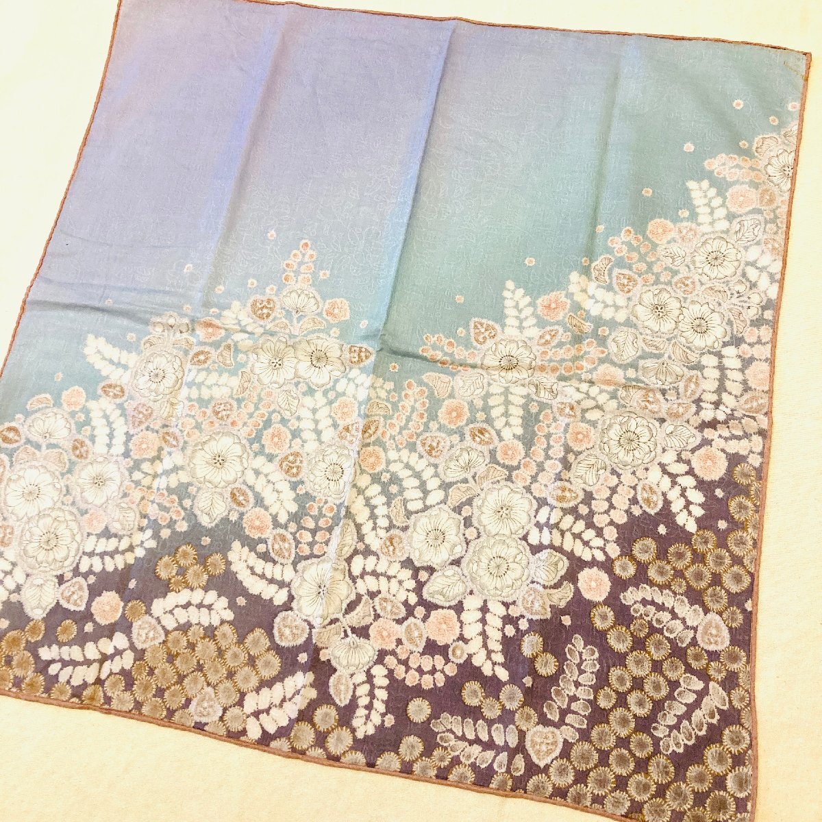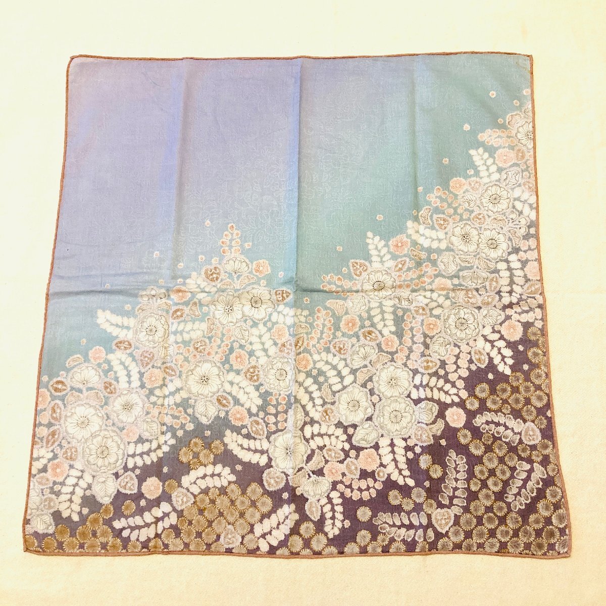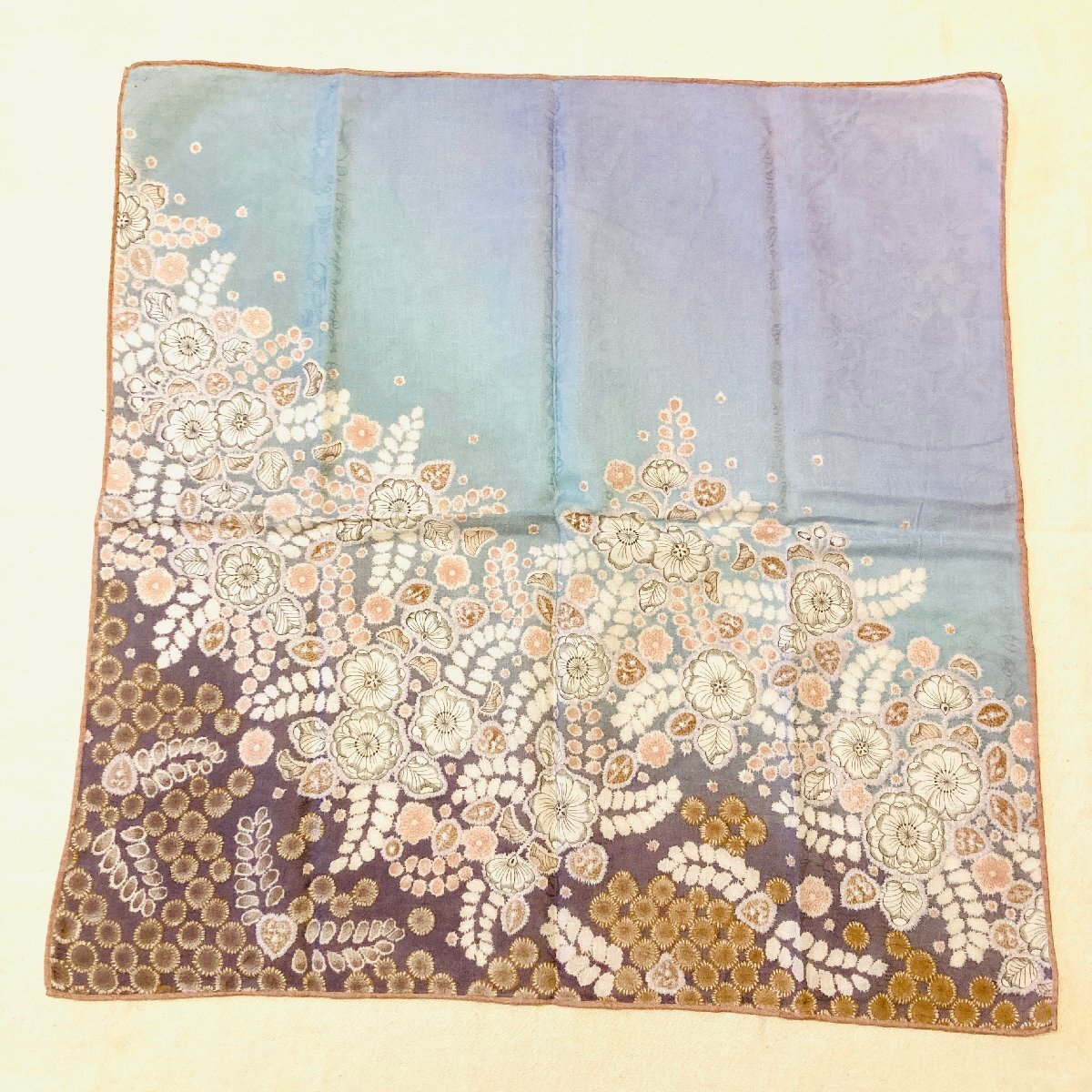 花柄 フローラル デザイン スカーフ ハンカチーフ ライトパープル/ライトブルー系 50 × 50cm