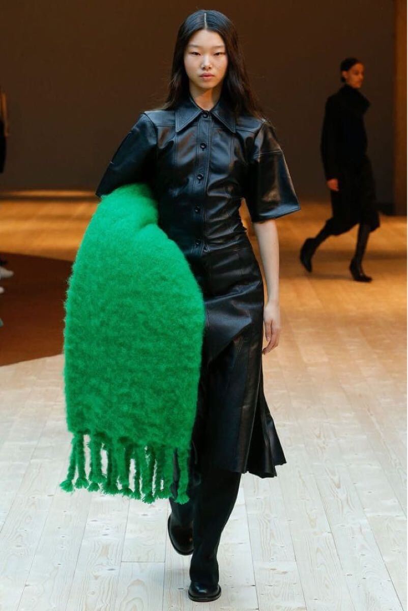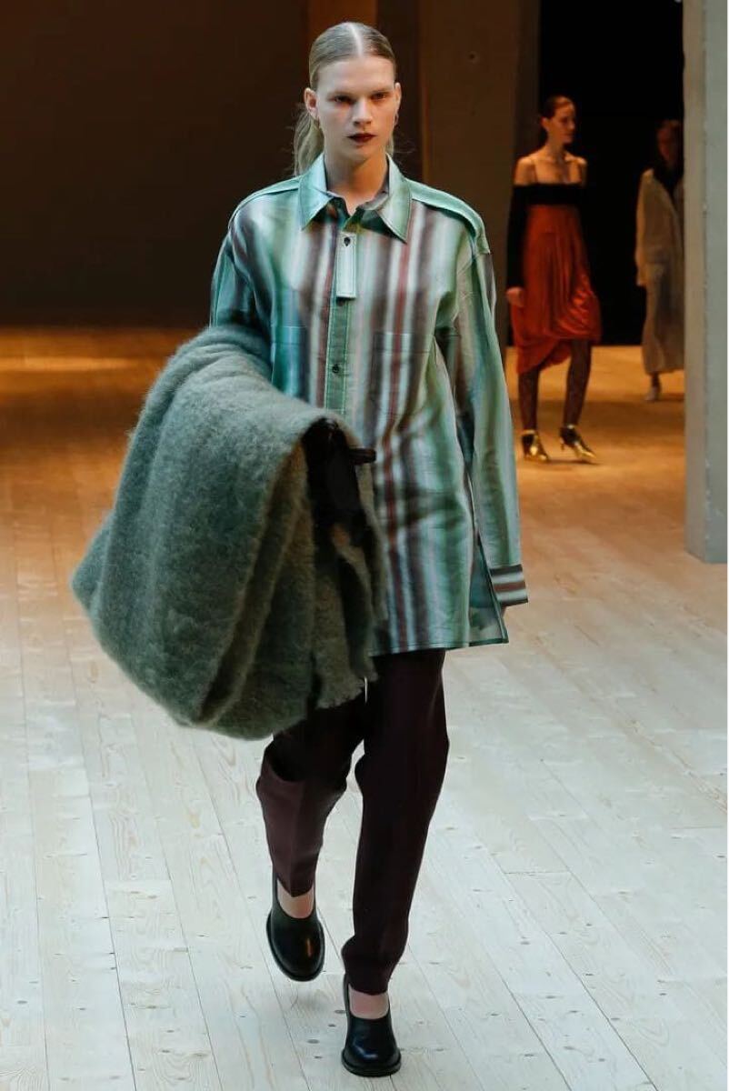 ランウェイでも象徴的に登場した、存在感ある一枚です。