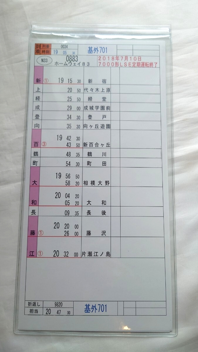 ★小田急★2018年7月10日7000形LSE定期運行終了★スタフ 運転士時刻表