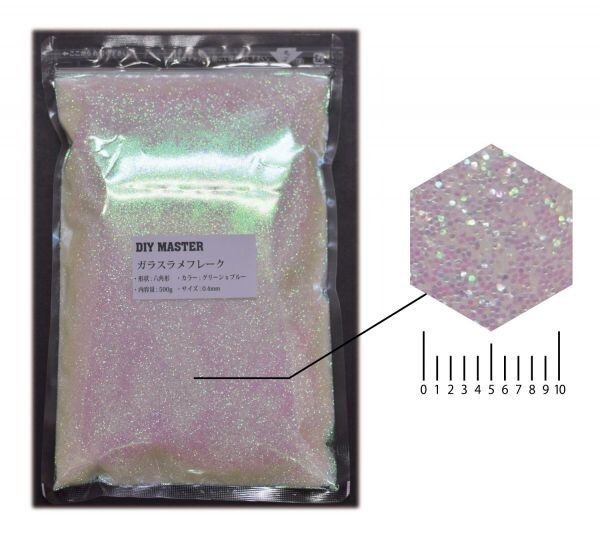 | ◆DIY MASTER ガラスラメフレーク (偏光) グリーンxブルー 0.4mm 500g◆ | |||||||||