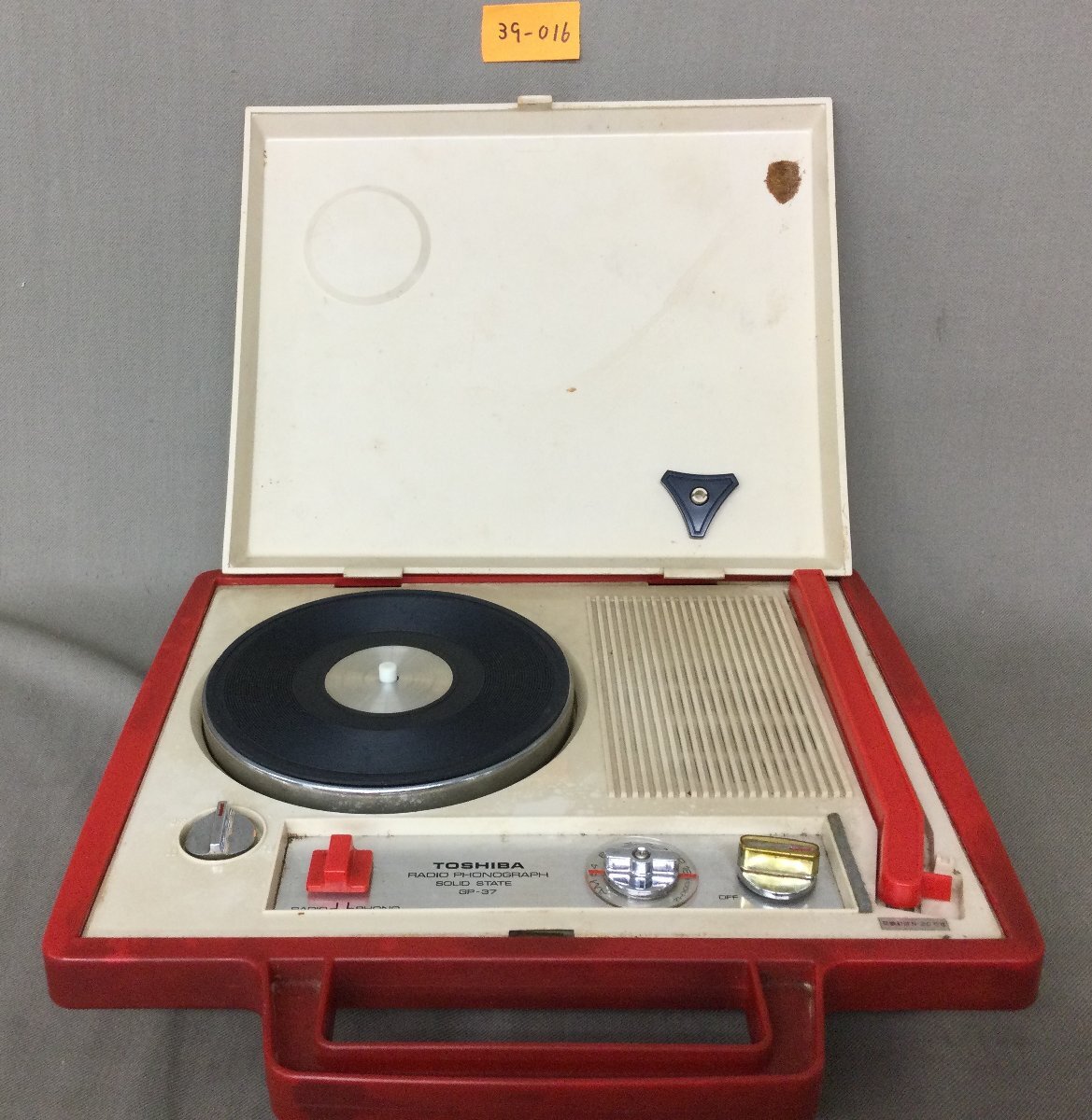●★39―016★ターンテーブル 東芝 AMラジオ付ポータブル電蓄 GP-37 動作品/レコードプレーヤー 昭和レトロ オーディオ機器[100]
