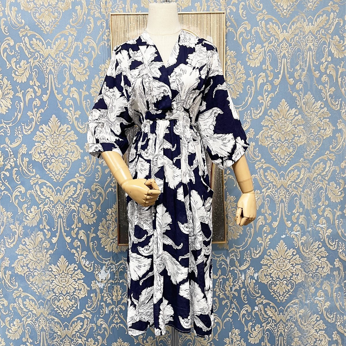 定価5万★christian milada・ミラノ発・ワンピース★上品 コットン100% 薄手 Vネック 花柄 エレガント 着せ レデイーズ 日常 夏 M/36サイズ