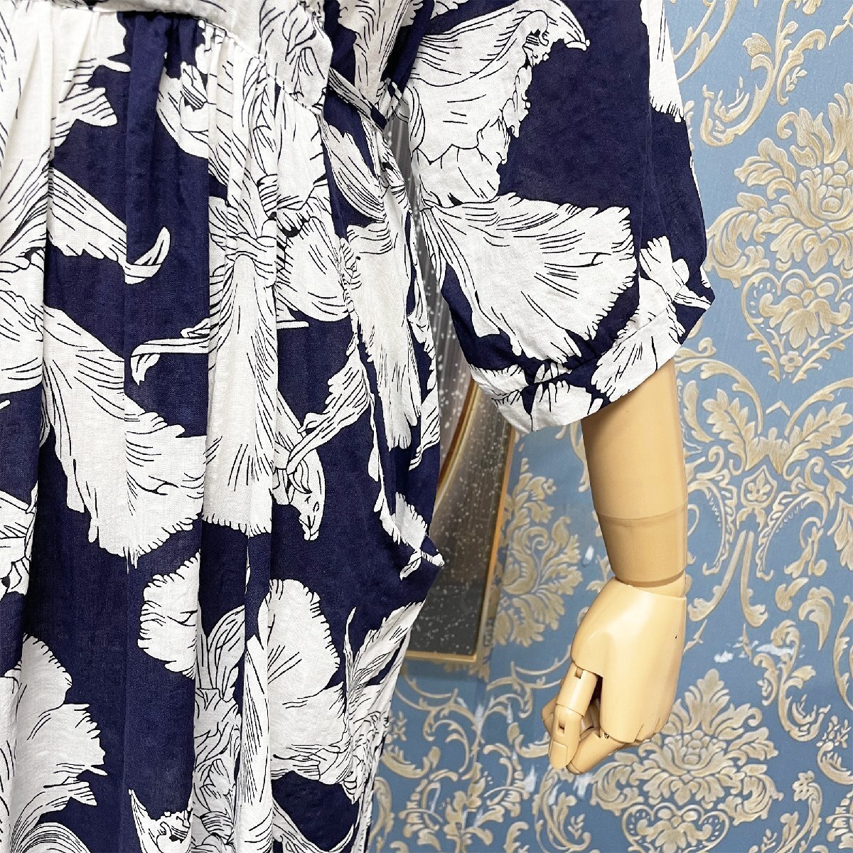定価5万★christian milada・ミラノ発・ワンピース★上品 コットン100% 薄手 Vネック 花柄 エレガント 着せ レデイーズ 日常 夏 M/36