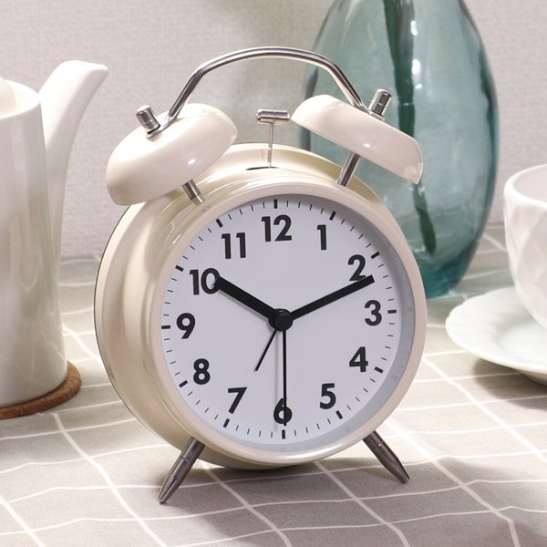 目覚まし時計 アナログ 置き 卓上 おしゃれ ベル 卓上 連続秒針 レトロ 小型 プレゼント 送料無料 7M◇ ベル置時計:アイボリー
