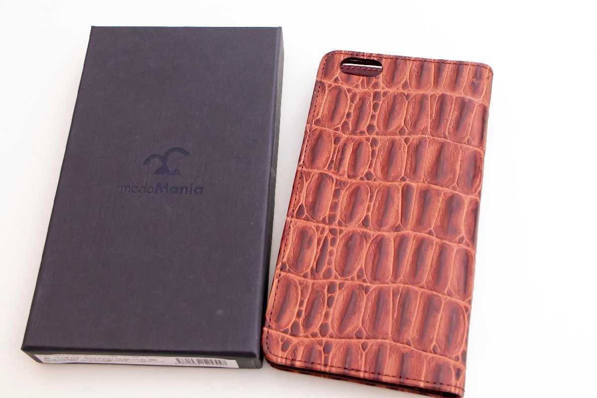 訳あり iPhone6Plus/6sPlus 高級 手帳型 イタリア産 本革 ケース クロコ ブラウン モーダマニア modamania