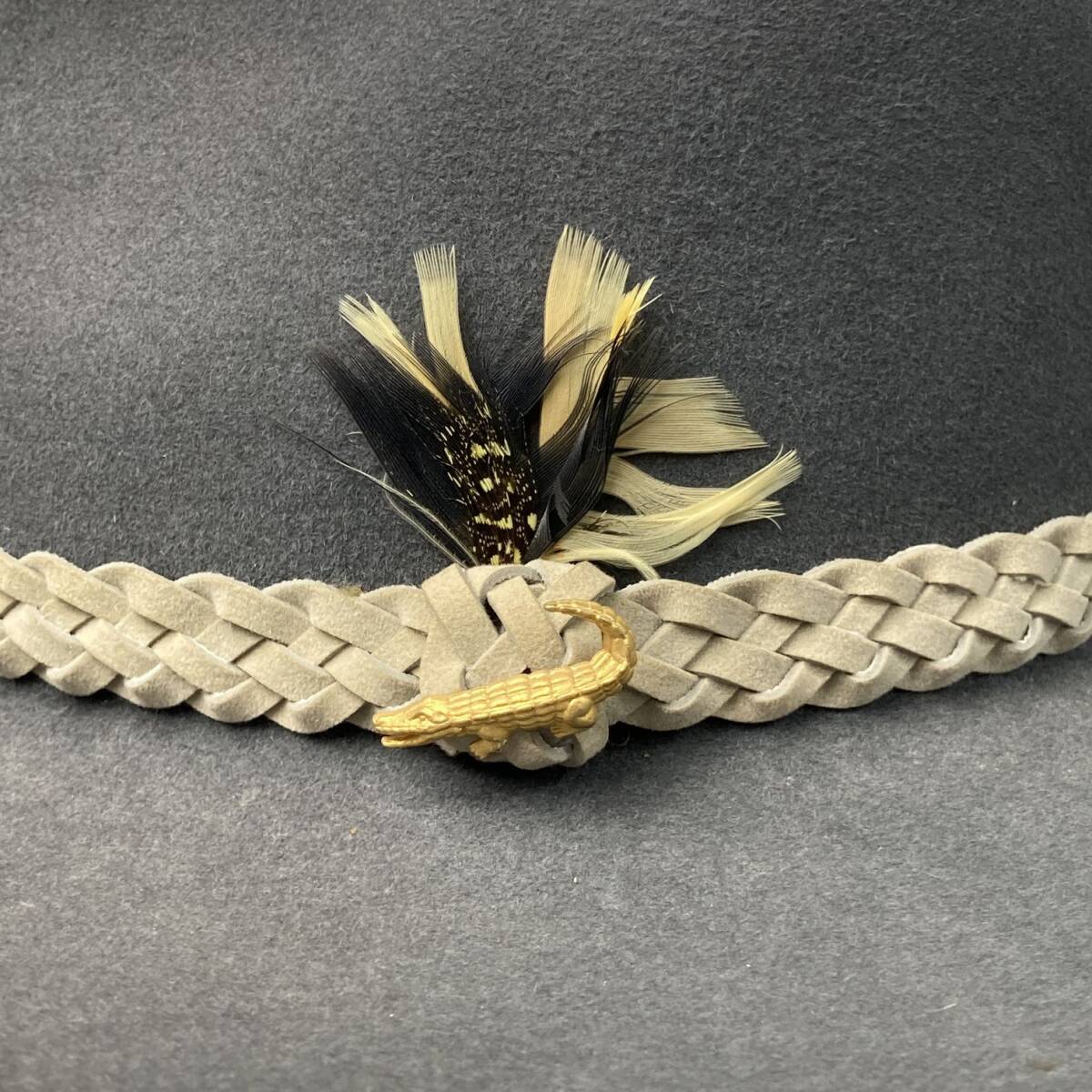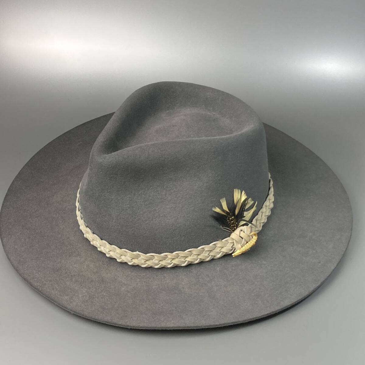 《Culgoa River(カルゴアリバー)》ピュアファーフェルトハット 59 グレー × フェザ―アクセント