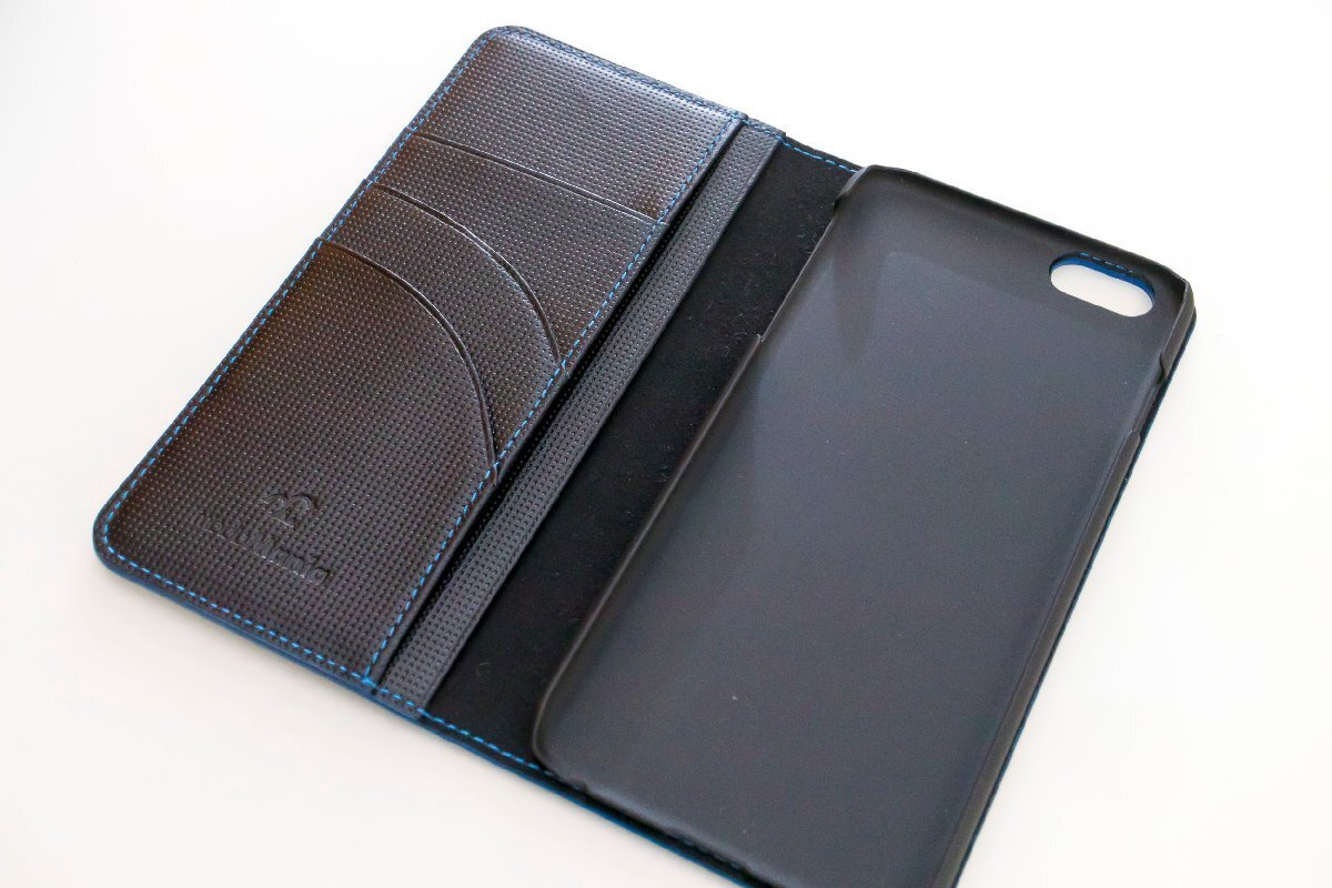 新品 訳あり iPhone6Plus iPhone6sPlus 高級 手帳型 イタリア産 本革 ケース ナイトトリップ ブラック×ブルーーステッチ  modamania