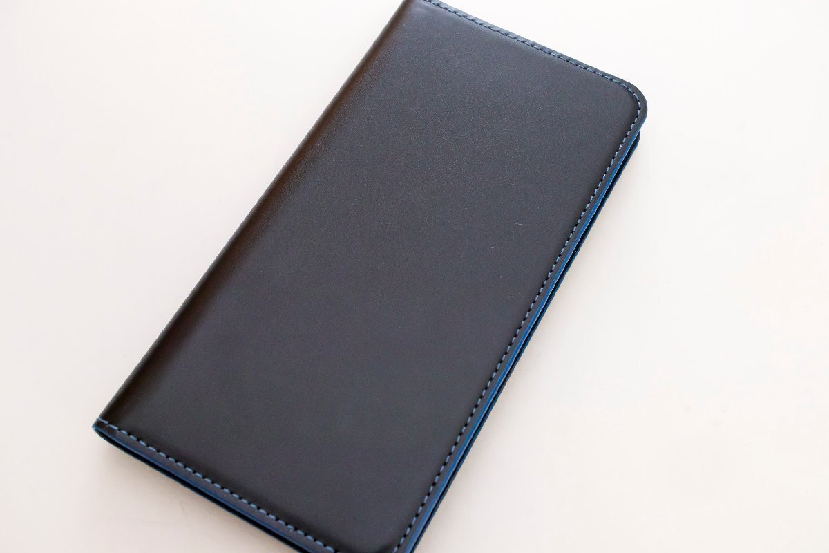 新品 訳あり iPhone6Plus iPhone6sPlus 高級 手帳型 イタリア産 本革 ケース ナイトトリップ ブラック×ブルーーステッチ modamania